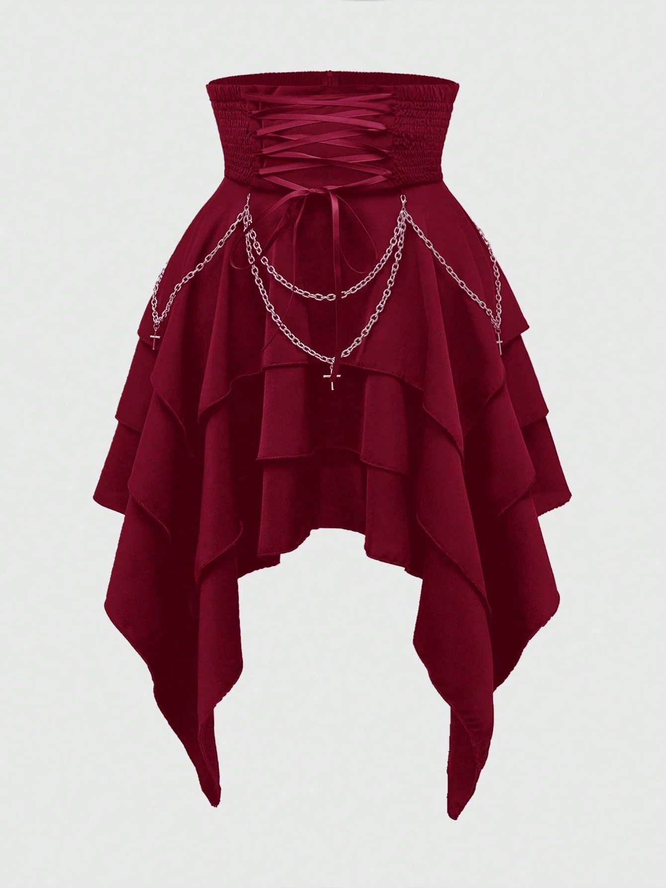 Plus Size Gothic Cross Chain Asymmetrical Hem Skirt, Halloween