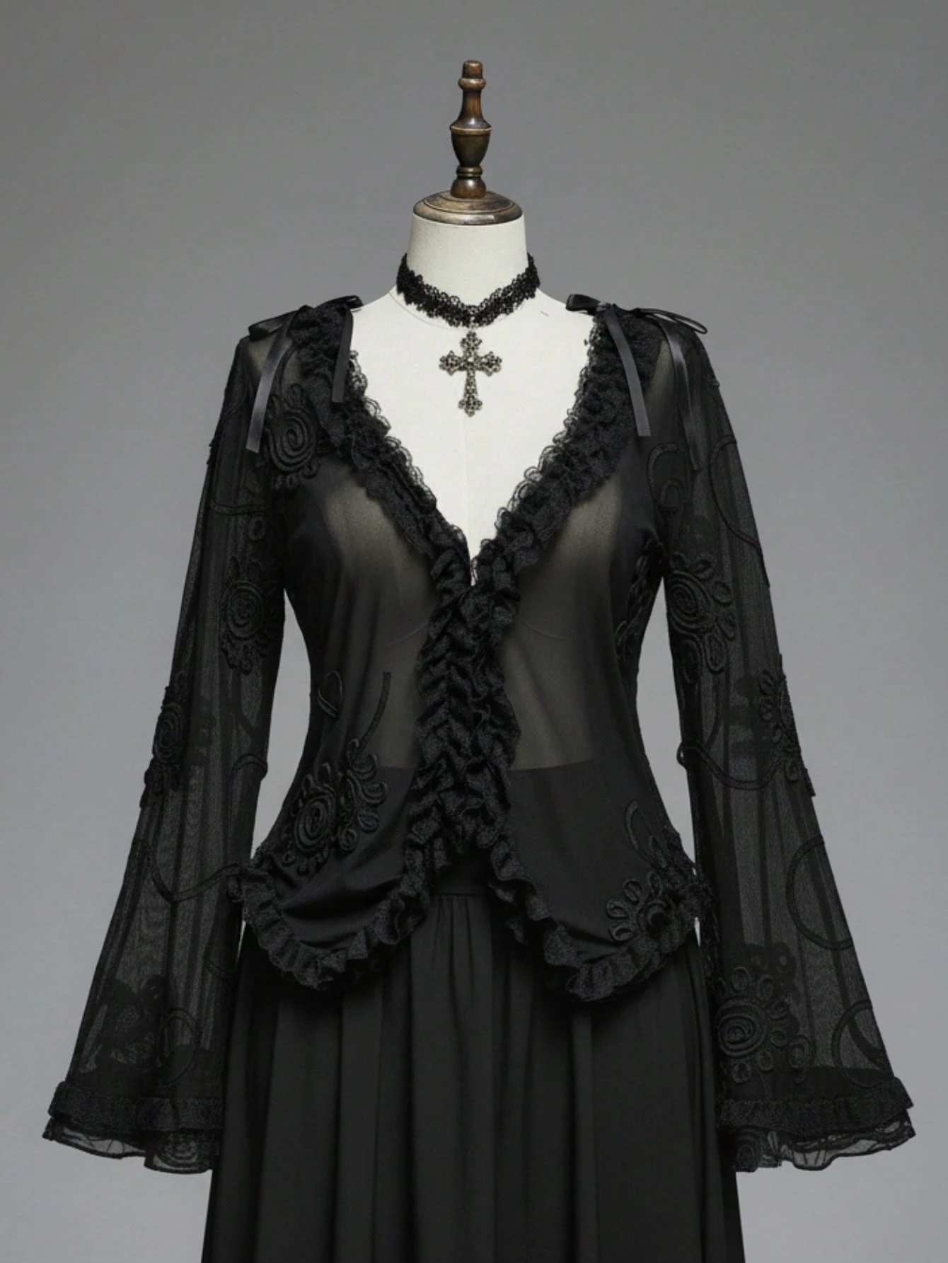 Plus Size Gothic Sexy Sheer Embroidered Flare Sleeve Top
