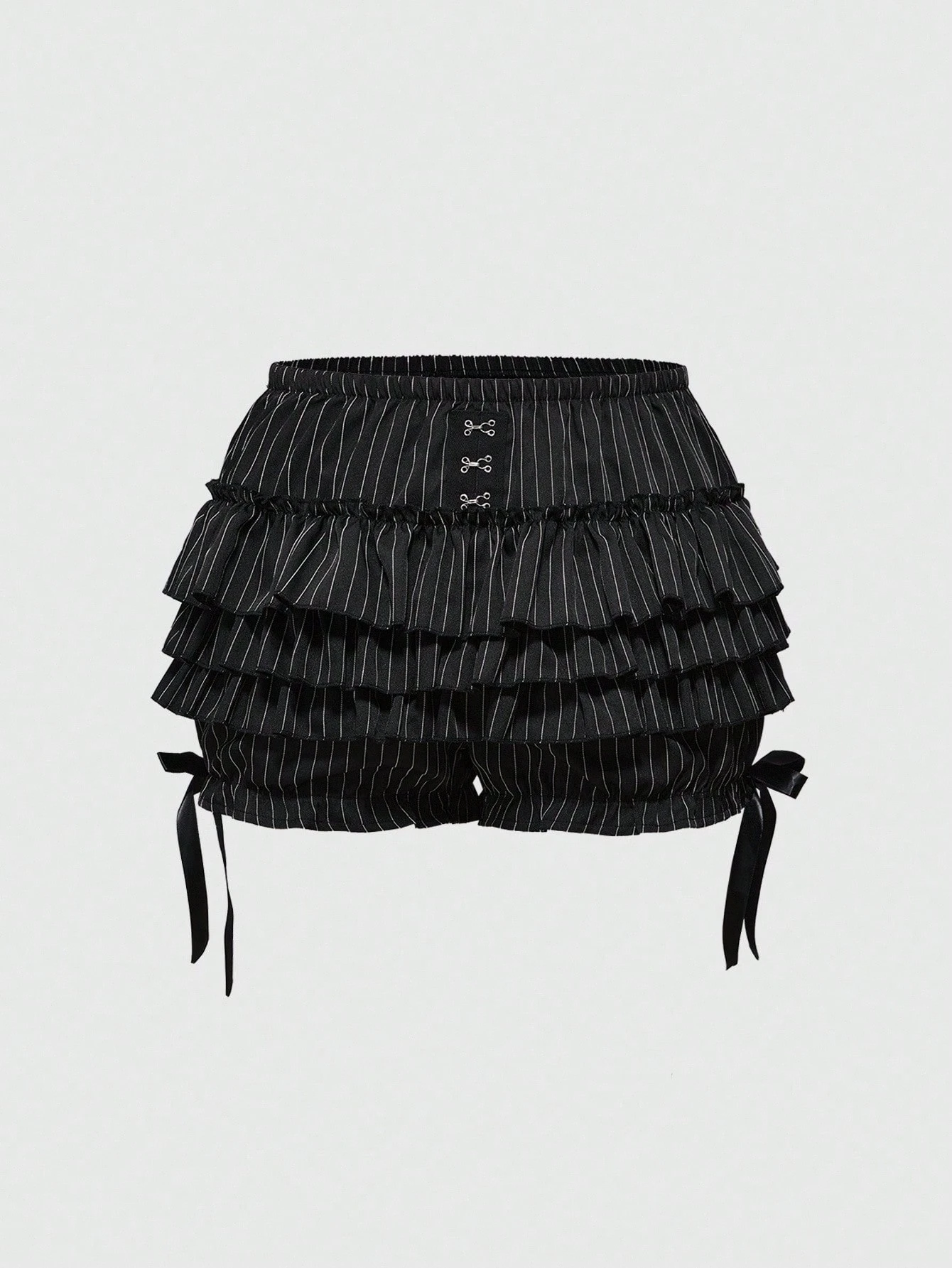 Plus Size Gothic Striped Multi-Layer Ruffle Hem Shorts