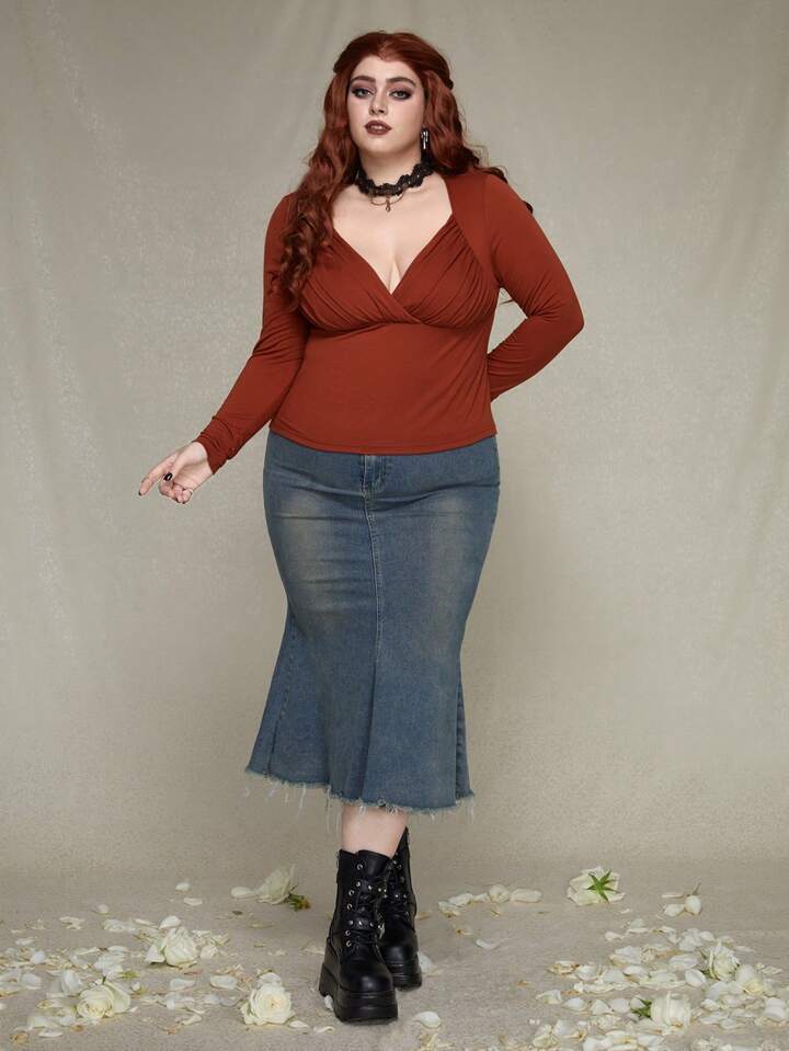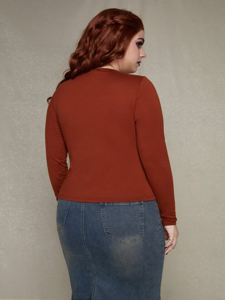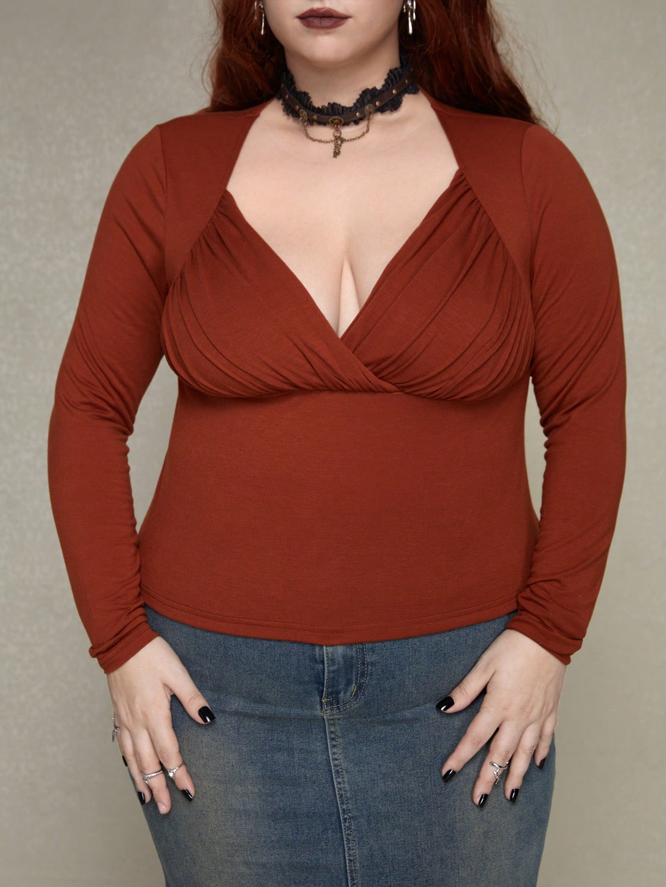 Plus Size Pleated Chest Long Sleeve T-Shirt