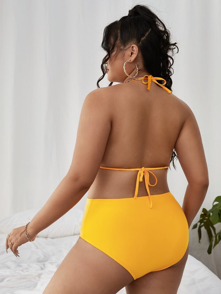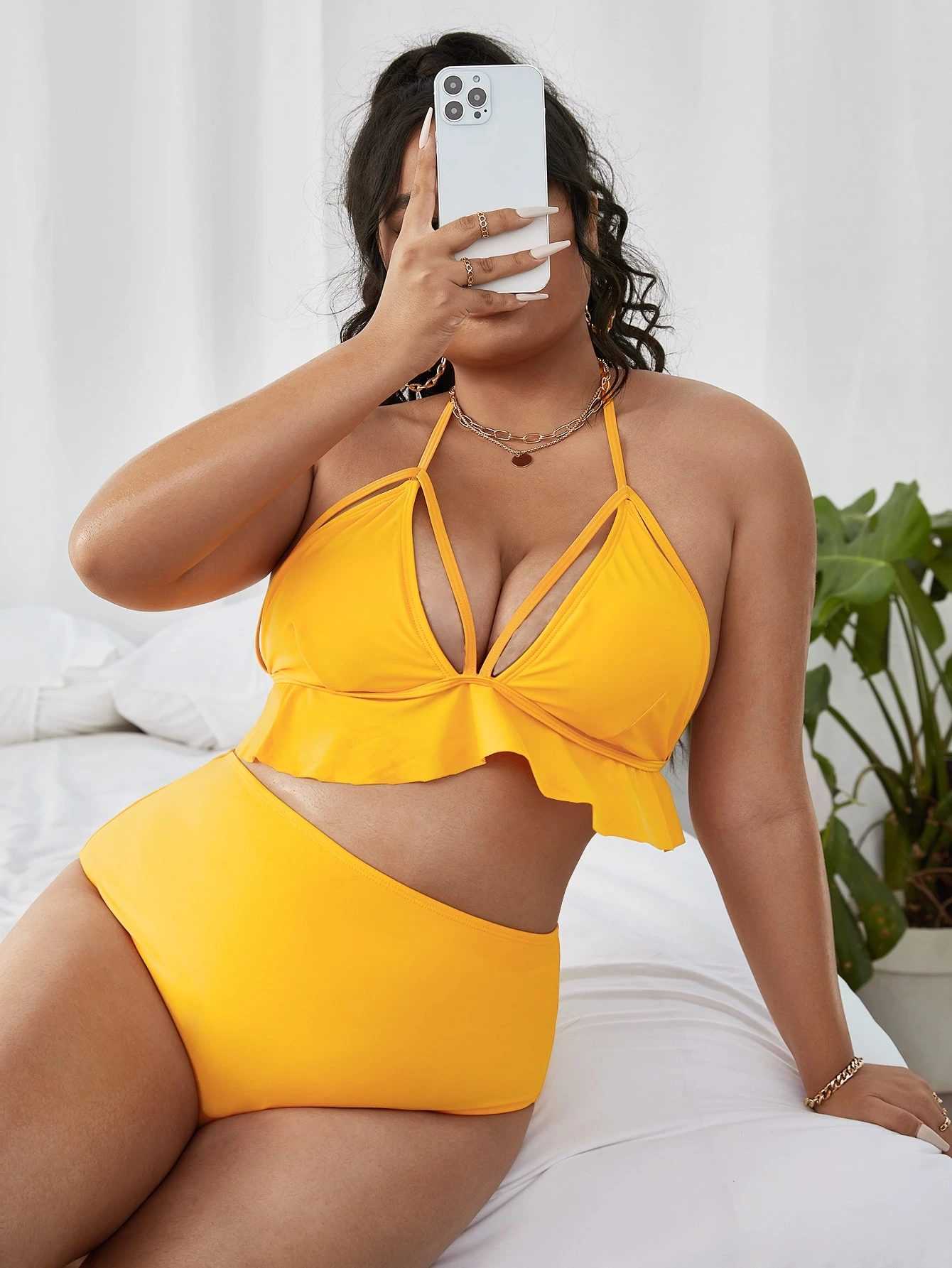 Plus Size Ruffle Hem Harness Bikini Set Summer Beach