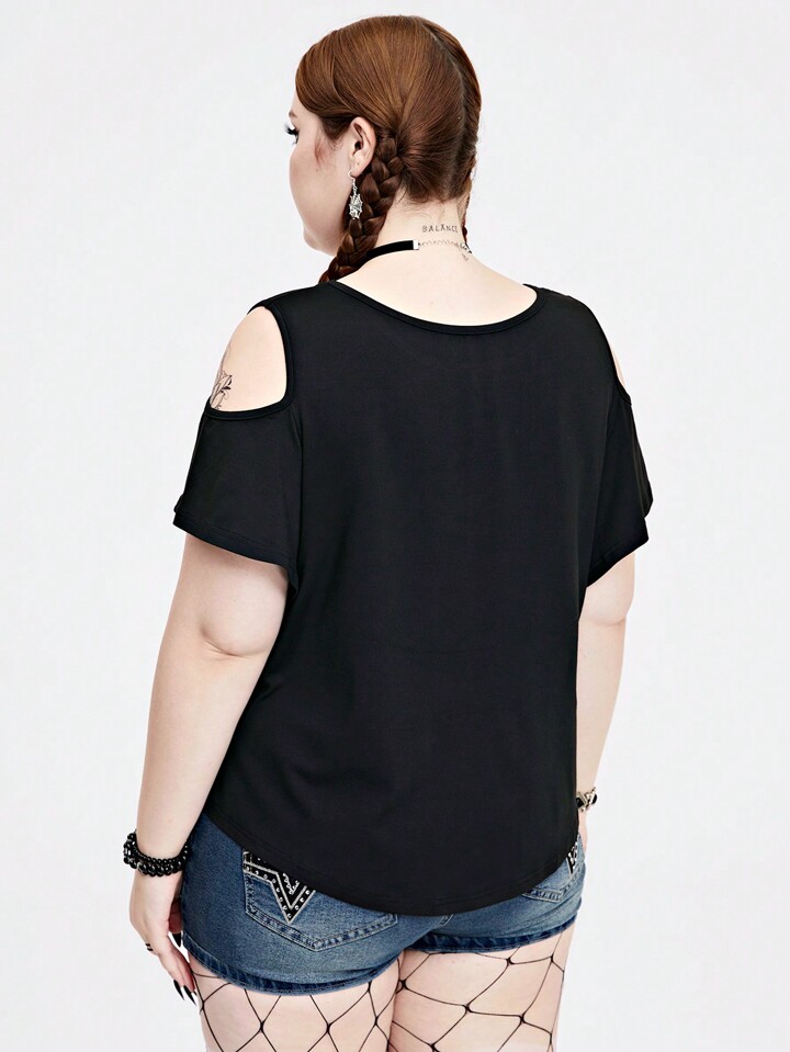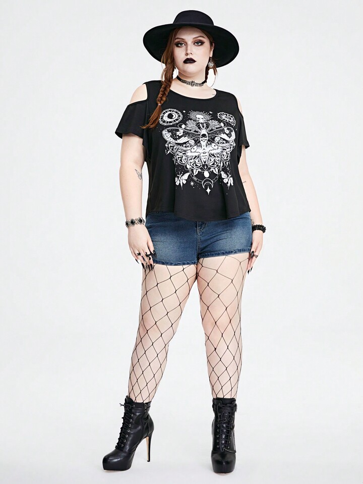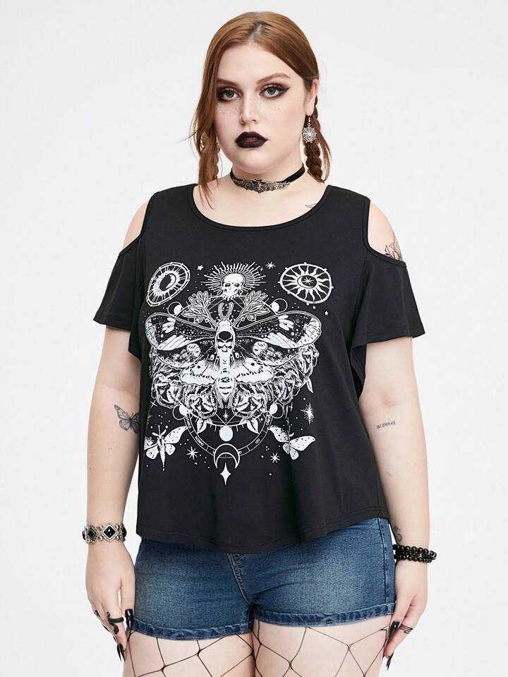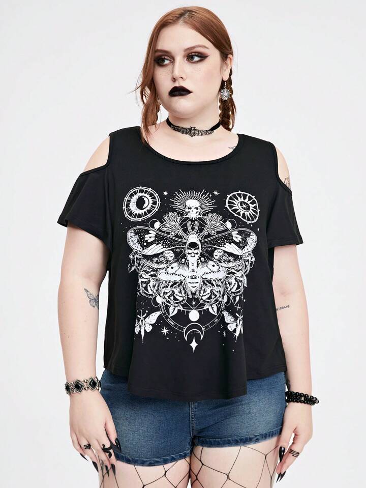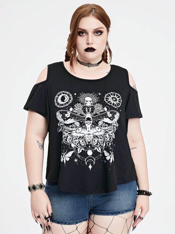 Plus Size Summer Vacation Gothic Pattern Round Neck Women Loose Short Sleeve T-Shirt,