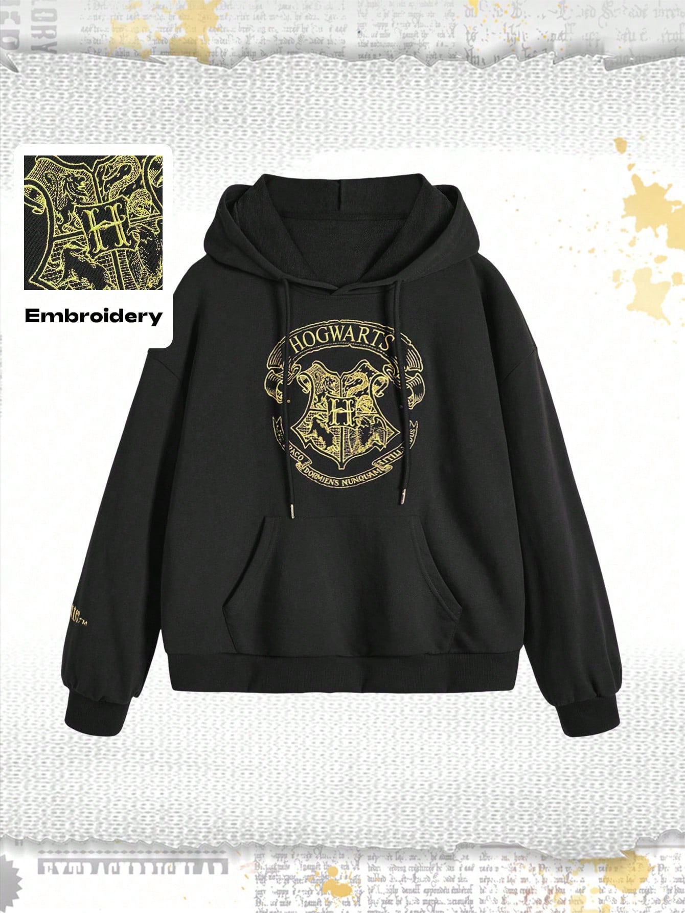Harry Potter | ROMWE Plus Size Women Casual Letter Embroidery Pocket Drawstring Hoodie