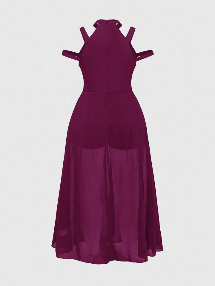 Plus Size Women Gothic Hollow Moon Mesh Patchwork Off Shoulder Dress
