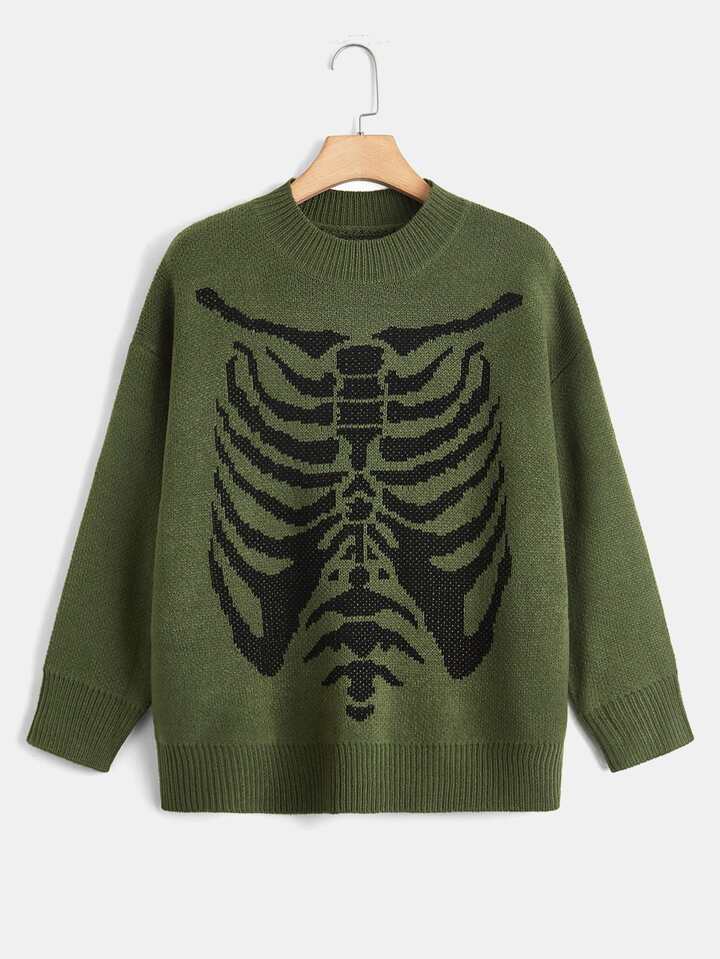 Plus Skeleton Pattern Drop Shoulder Sweater