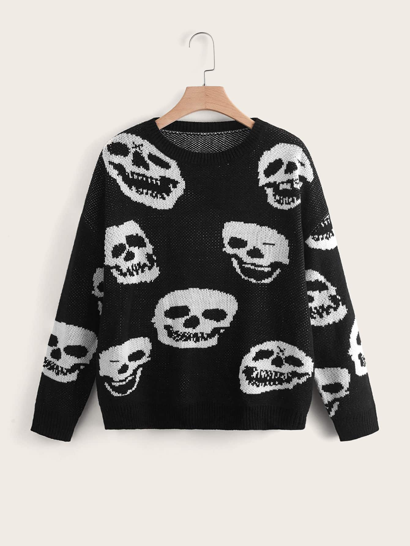 Plus Skull Pattern Drop Shoulder Sweater