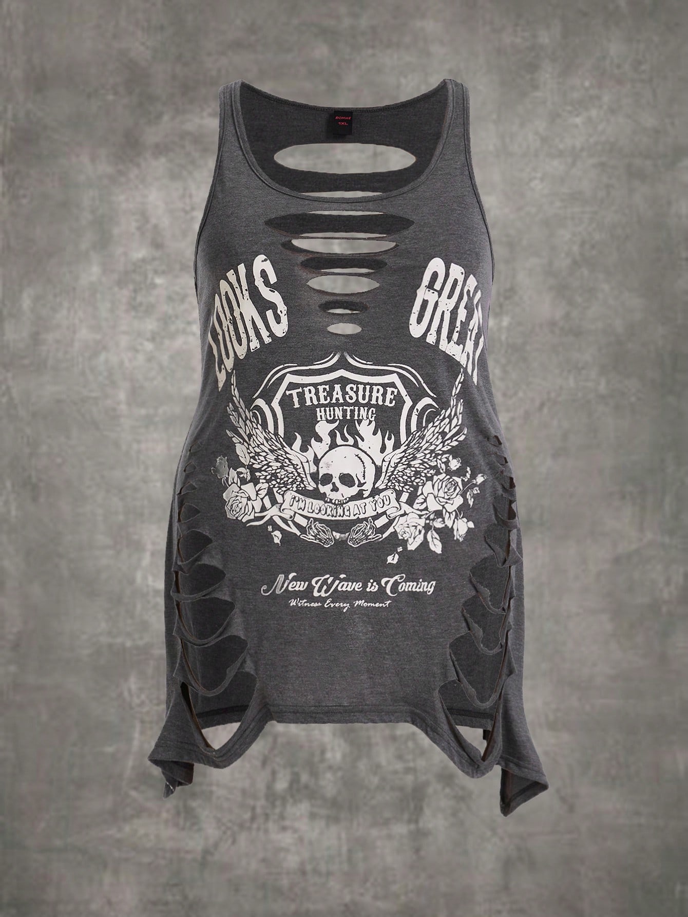 Plus Skull & Slogan Graphic Ripped Tank Top