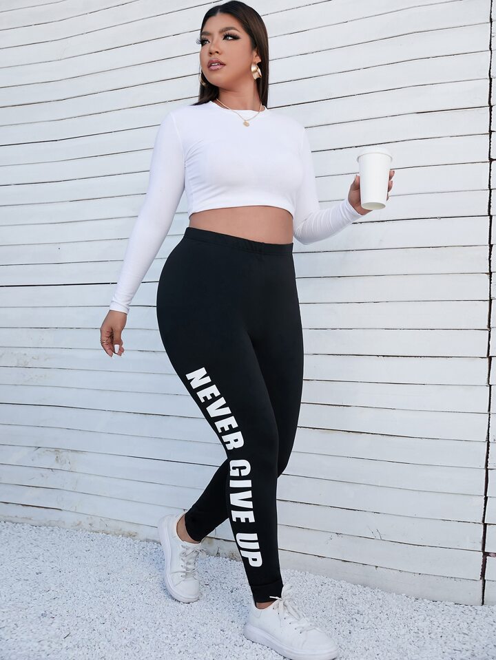 Plus Slogan Graphic Elastic Waist Leggings Fall Cloth For Women