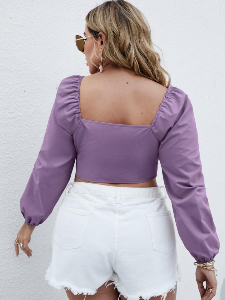 Plus Solid Lace Up Crop Top