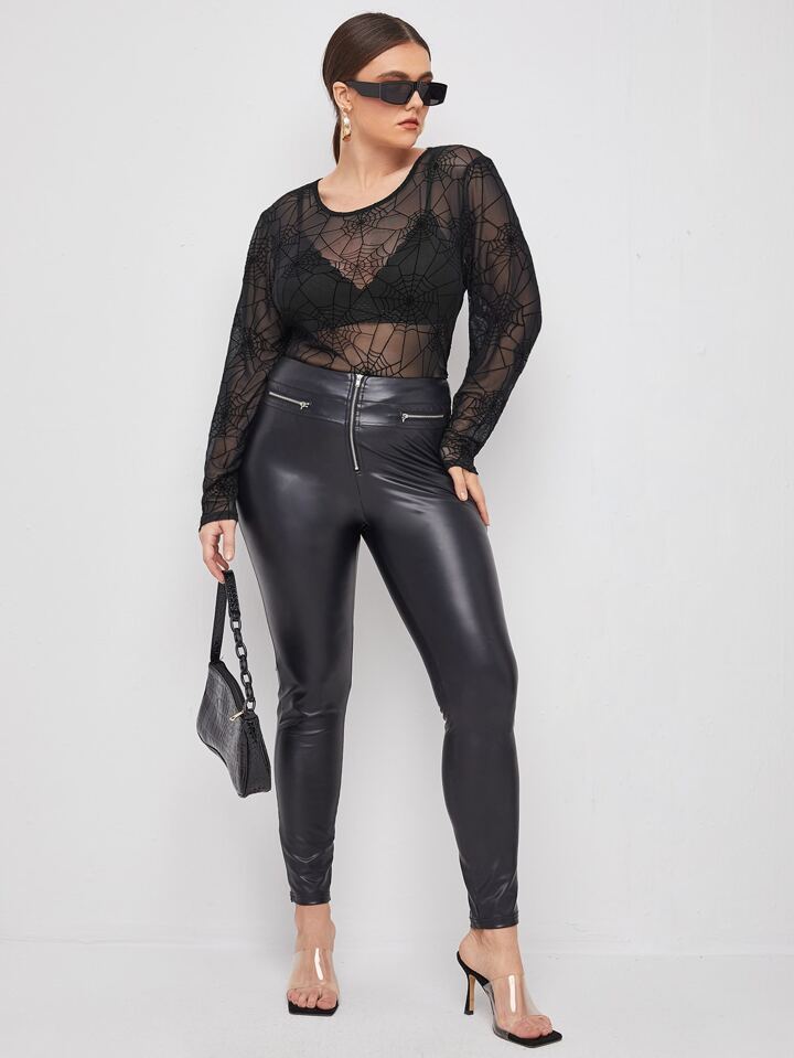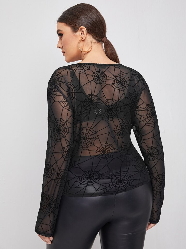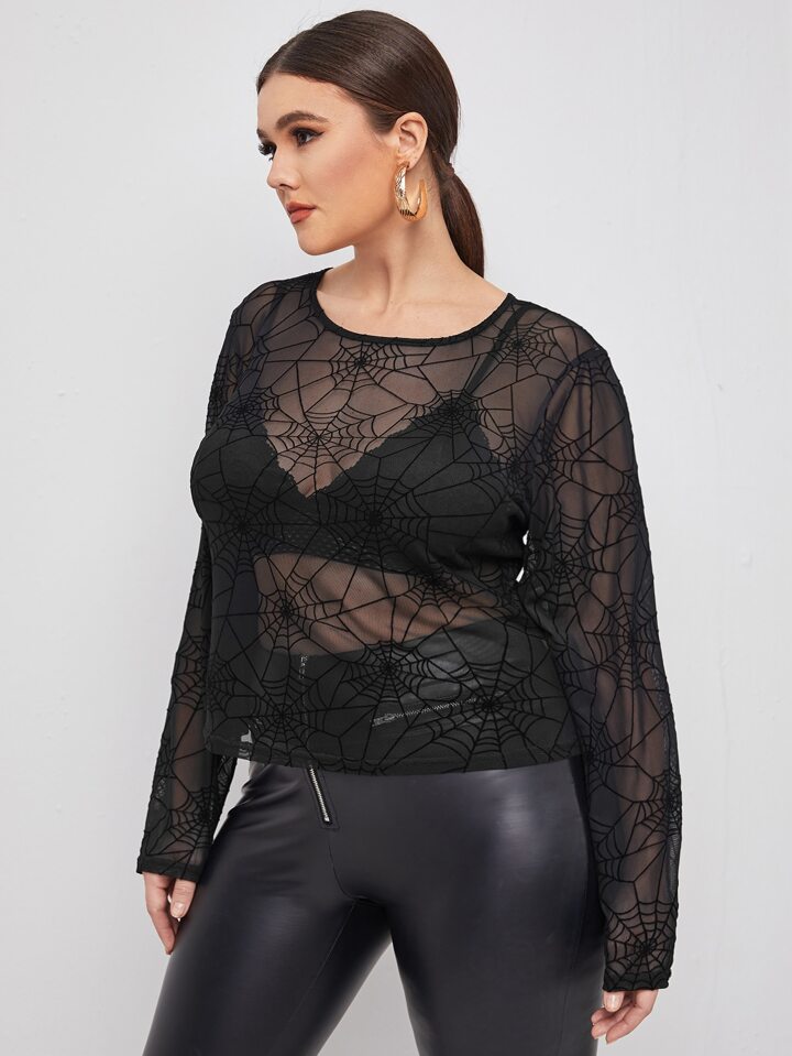 Plus Spider Web Mesh Sheer Top Without Bra