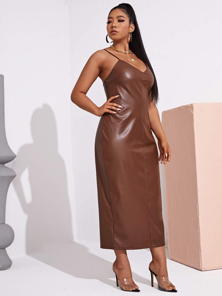 Plus Split Hem PU Leather Dress