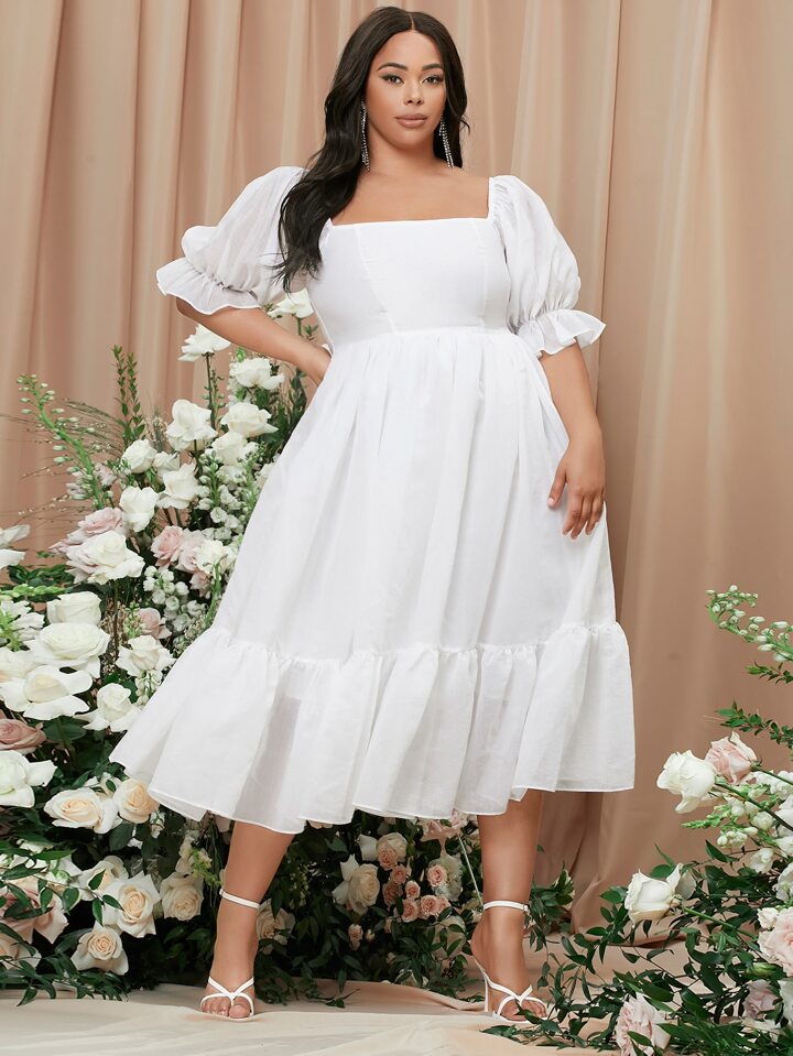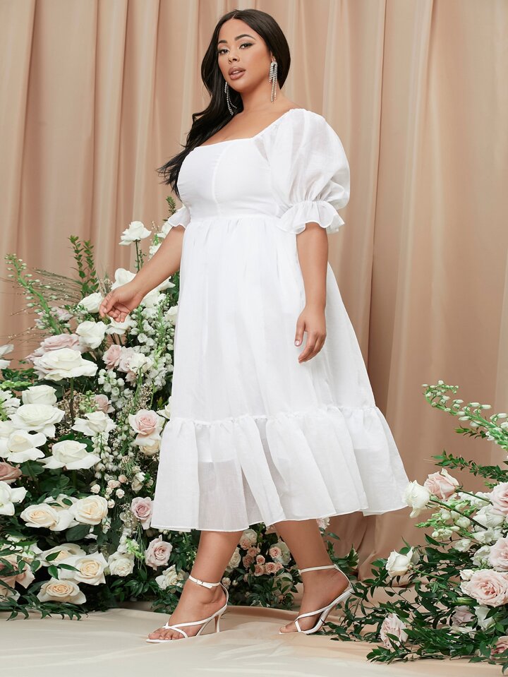 Plus Square Neck Puff Sleeve Milkmaid Wedding Dress