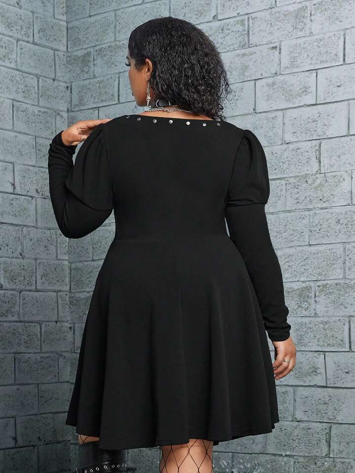 Plus Sweetheart Neck Gigot Sleeve Half Zip Dress Without Belt