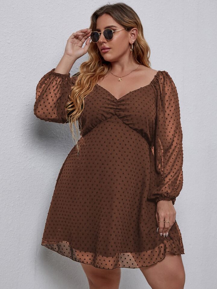 Plus Sweetheart Neck Swiss Dot Chiffon Dress