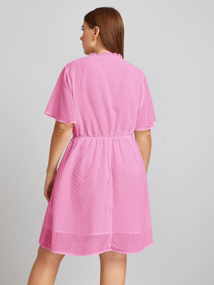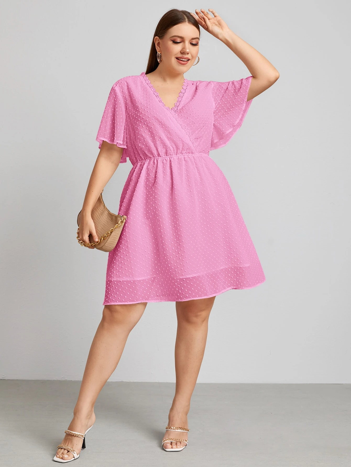 Plus Swiss Dot Surplice Front Flutter Sleeve Dress