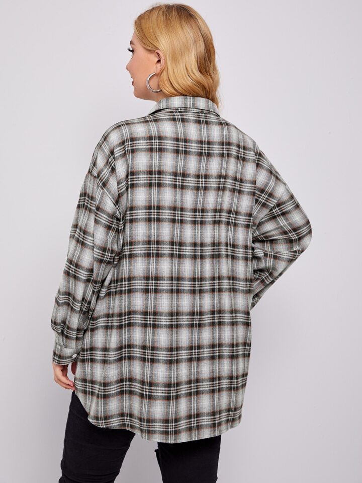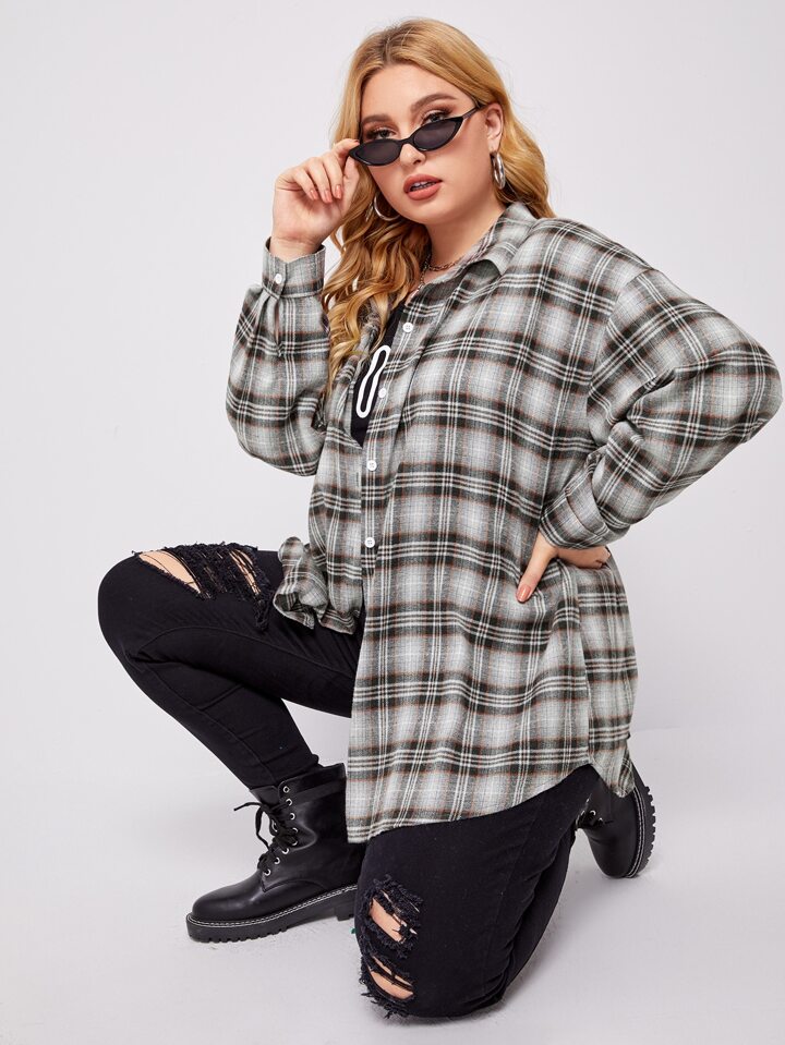 Plus Tartan Plaid Button Up Tunic Shirt