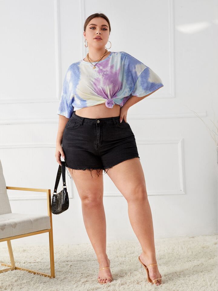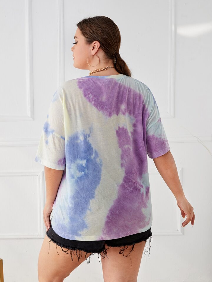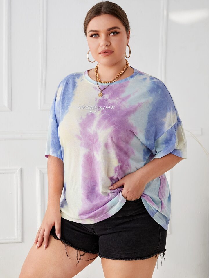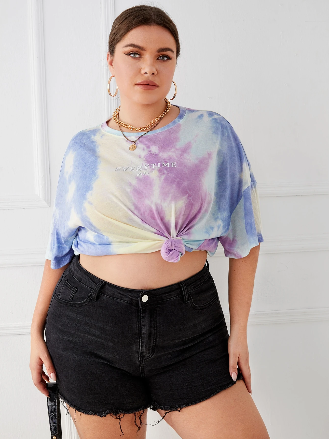 Plus Tie Dye & Slogan Graphic Drop Shoulder Tee
