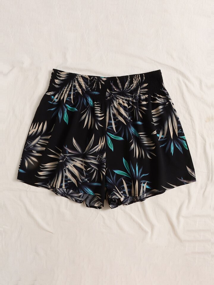 Plus Tropical Print Shirred Waist Summer Boho Shorts