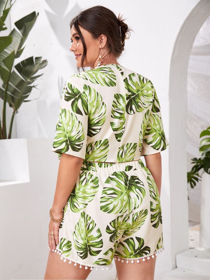 Plus Tropical Print Tie Front Top & Pom Pom Shorts