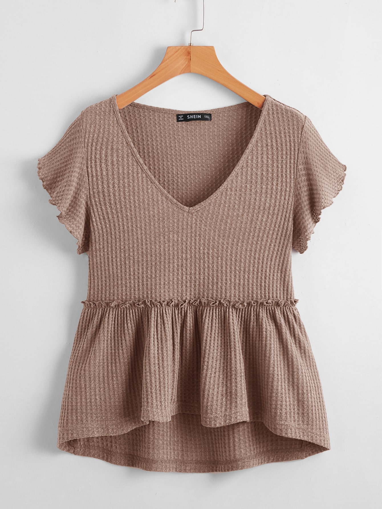 Plus Waffle Knit Flutter Sleeve Smock Top