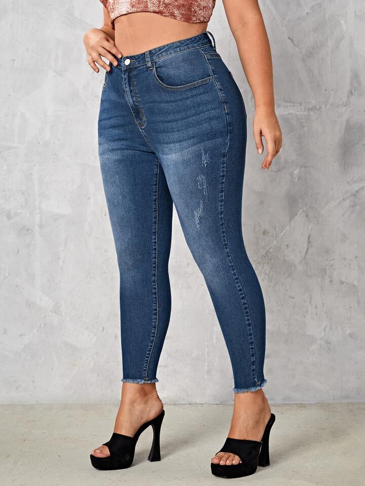 Plus Washed Raw Hem Jeans