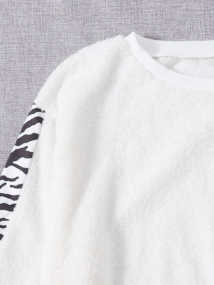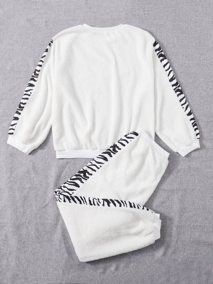 Plus Zebra Stripe Teddy Sweatshirt With Sweatpants