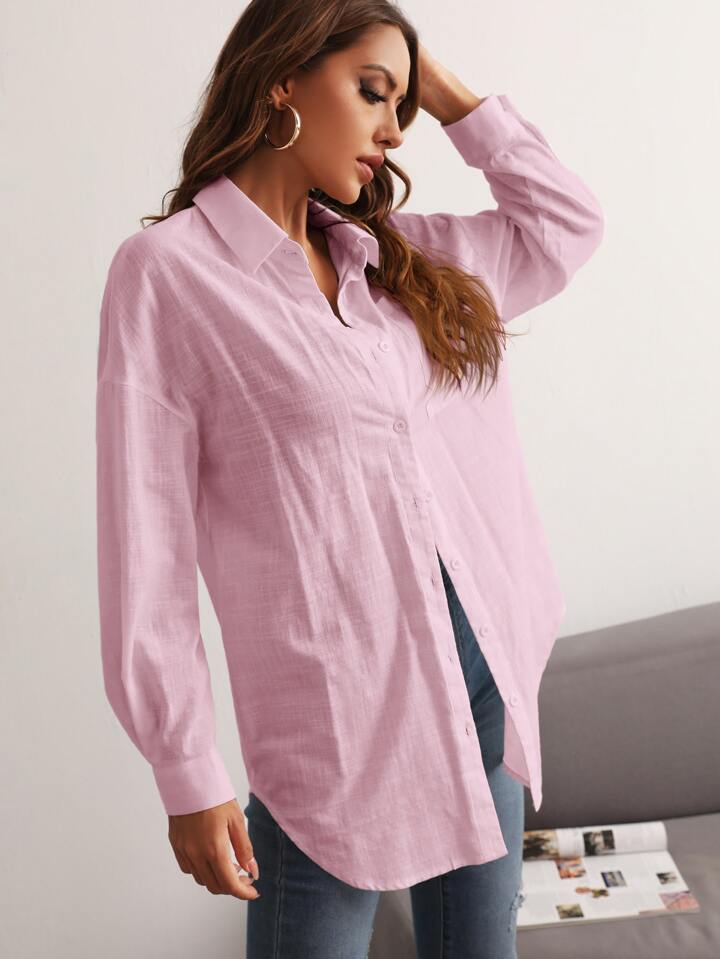 Pocket Patched Button Front Drop Shoulder Blouse Women Shirt Fall Cloth For Women