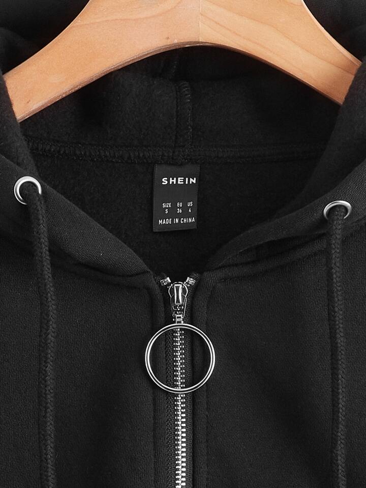 Pocket Ring Zipper Front Hoodie