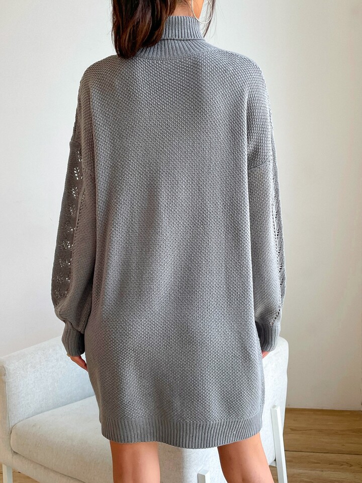 Pointelle Knit Turtleneck Drop Shoulder Sweater Dress Without Belt