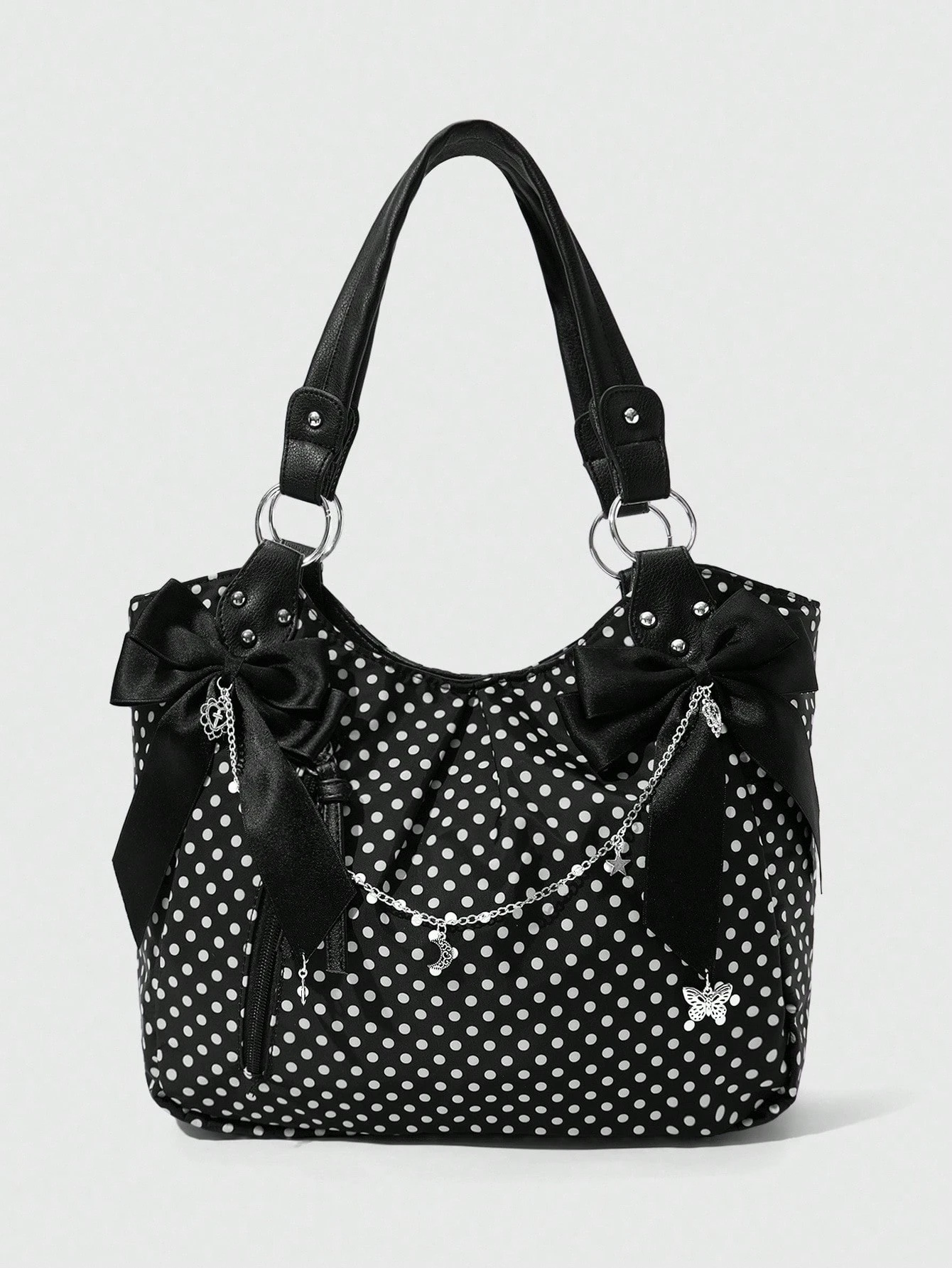 Kawaii Polka Dot Bow Decor Handbag, Suitable For Daily Commute And Travel