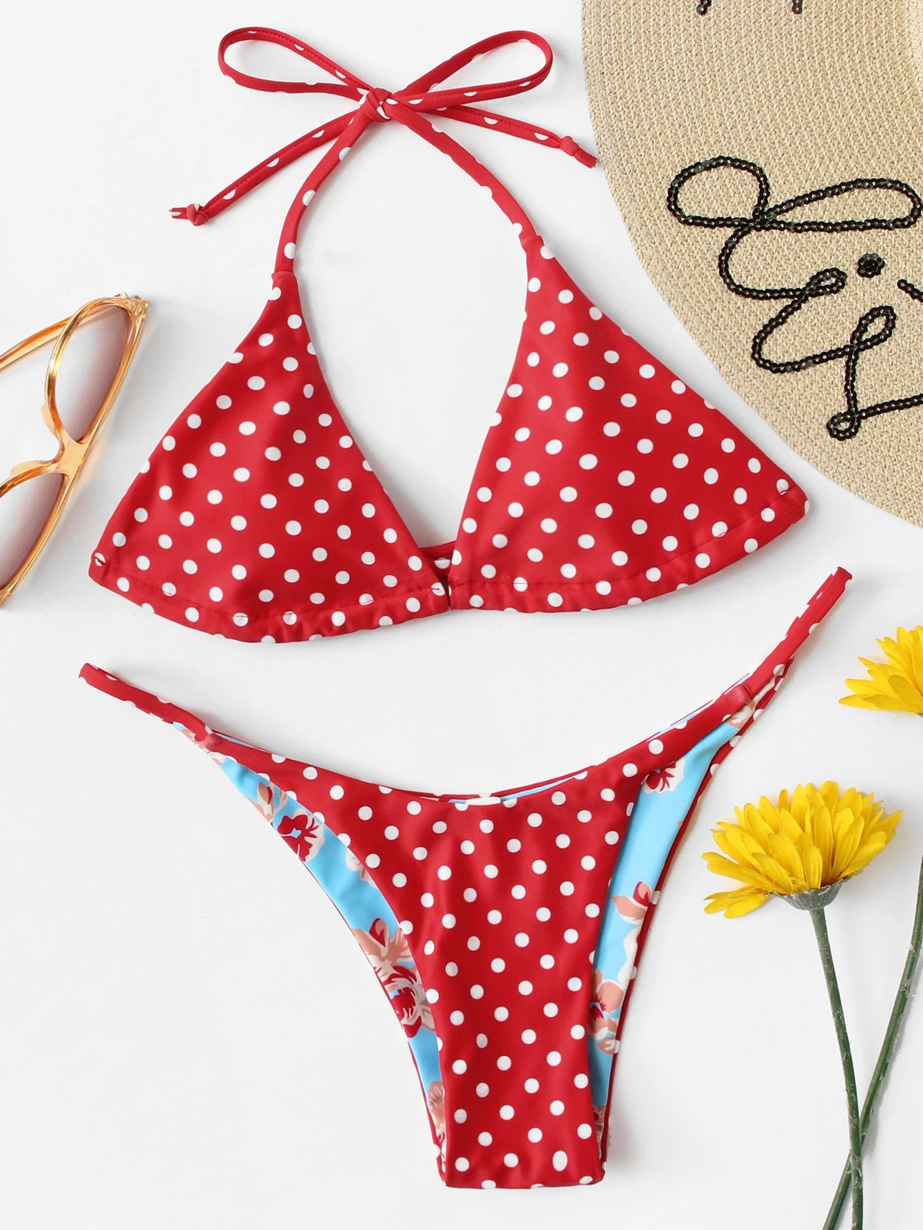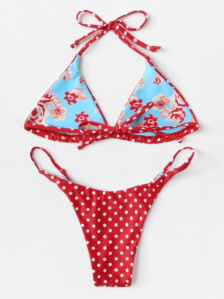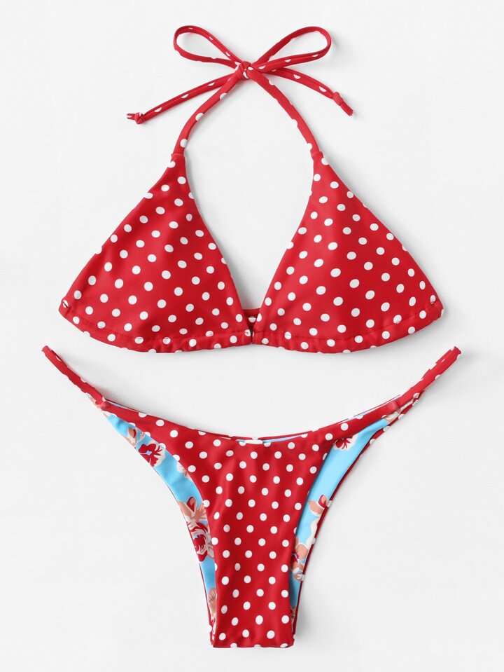 Polka Dot Self Tie Bikini Set