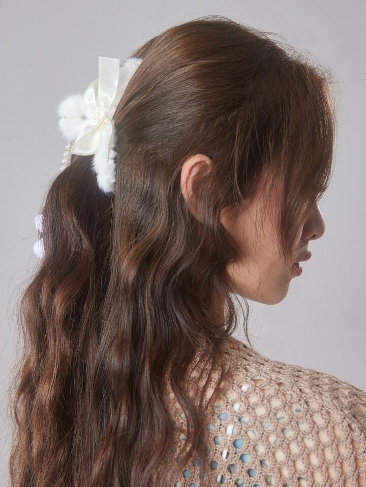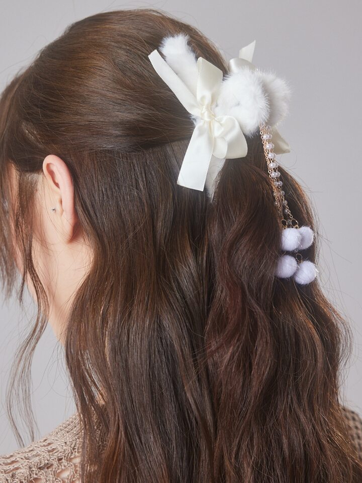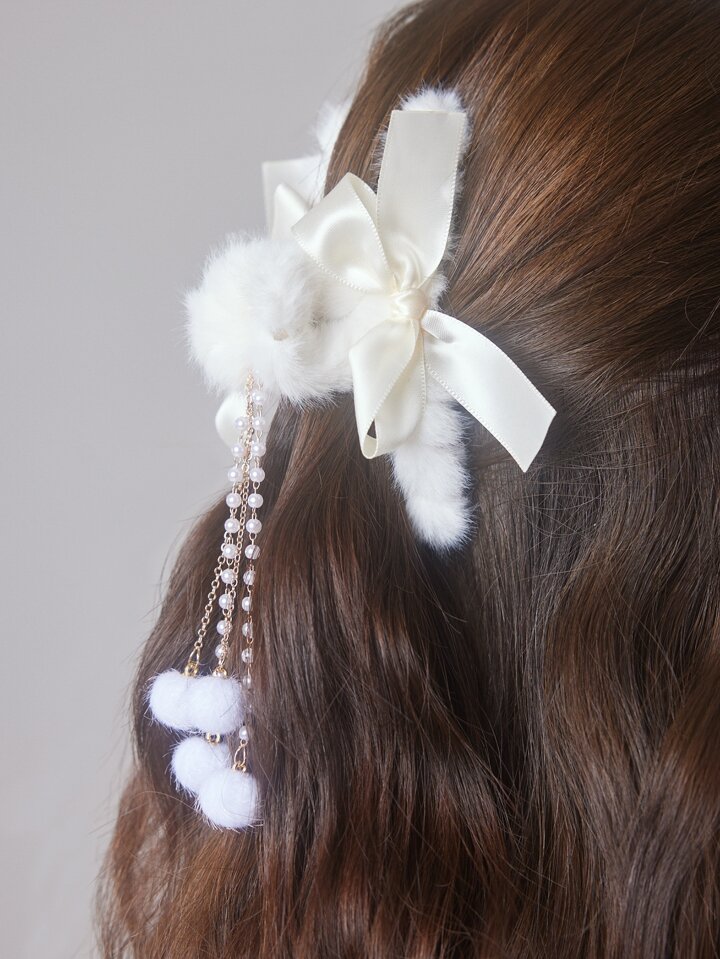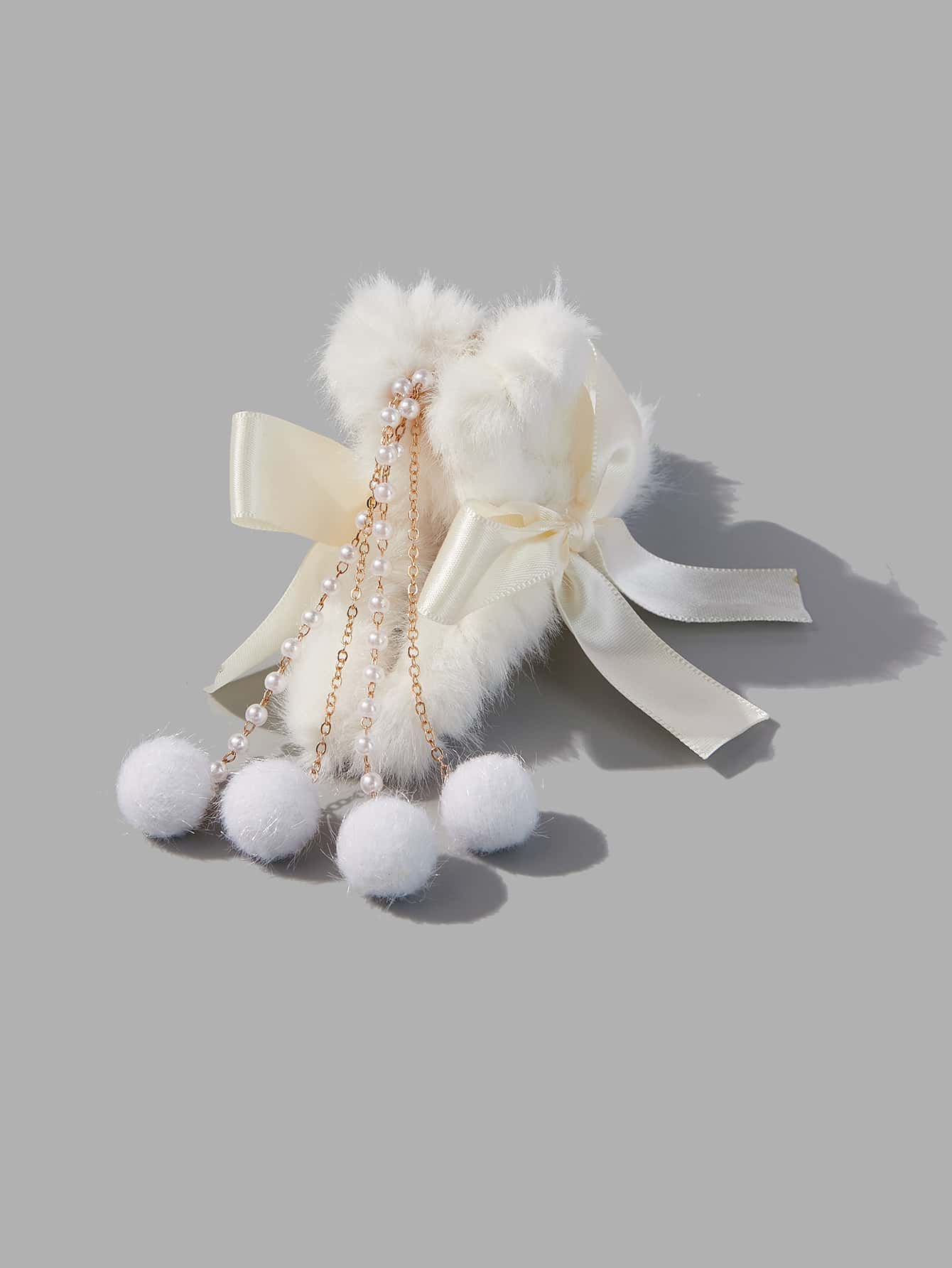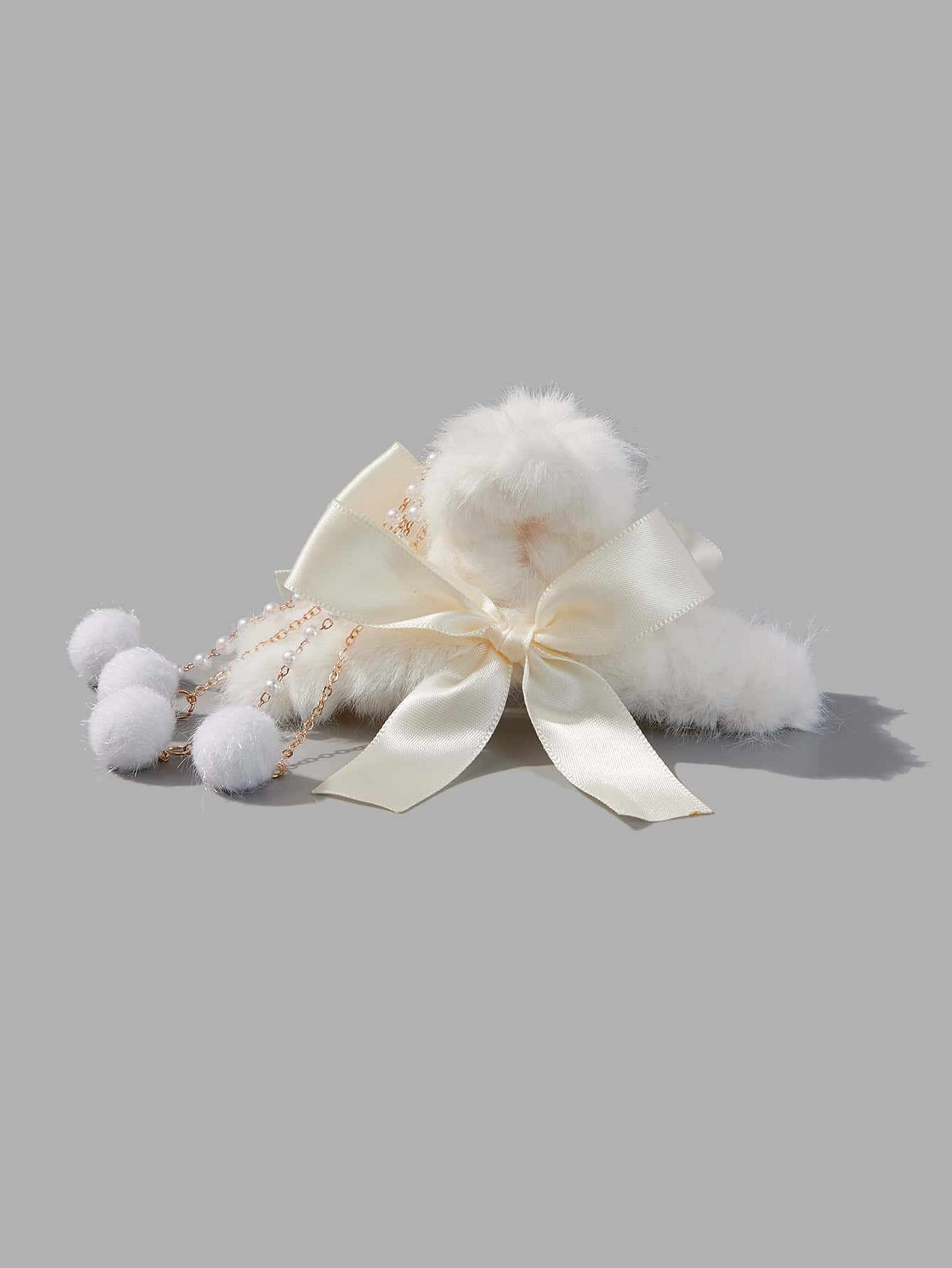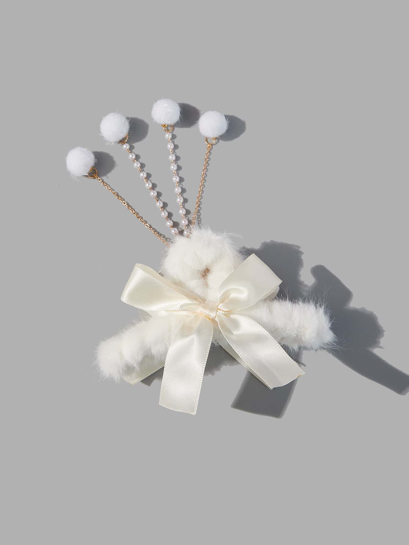 Pom Pom & Bow Decor Fluffy Hair Claw