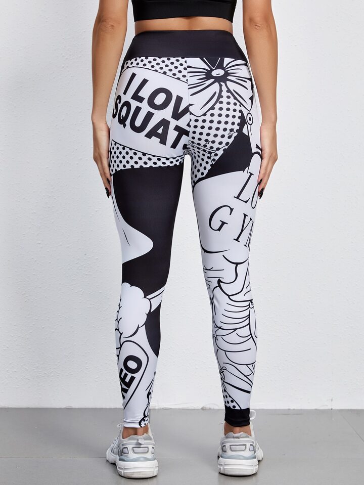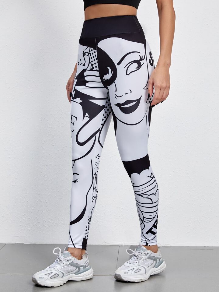 Pop Art Print Running Tights Absorbs Sweat Breathable Softness High Stretch Tummy Control Training Leggings
