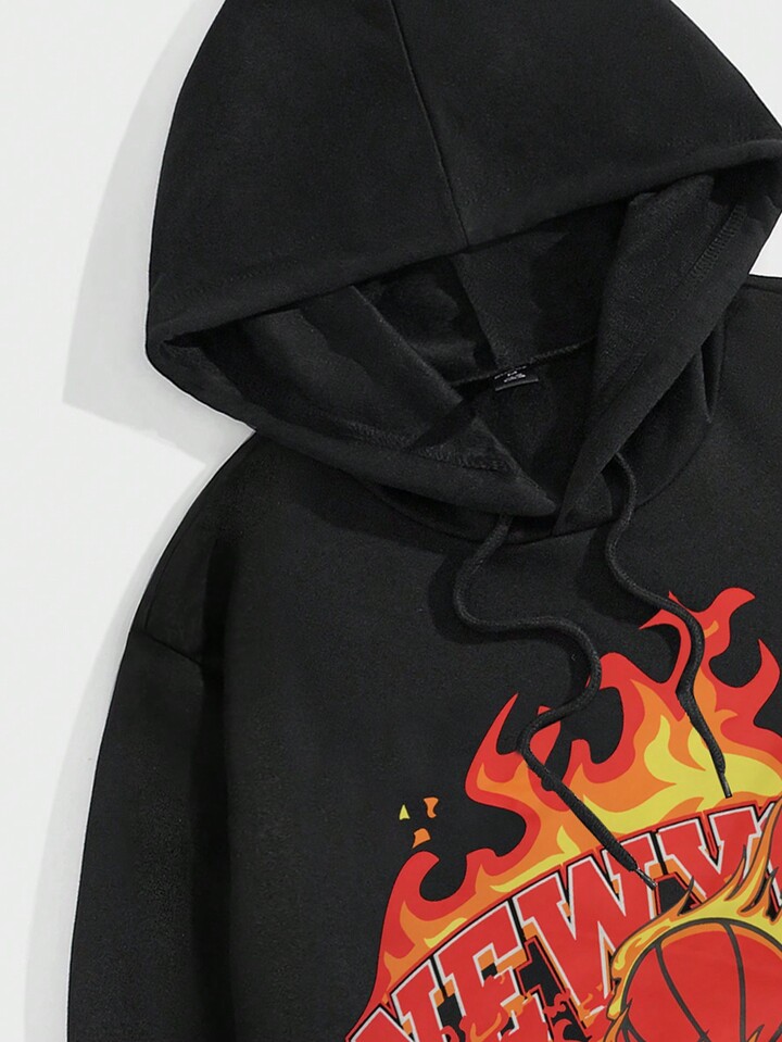 Prep Guys Fire & Letter Graphic Drawstring Hoodie