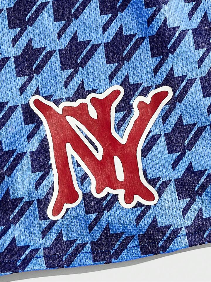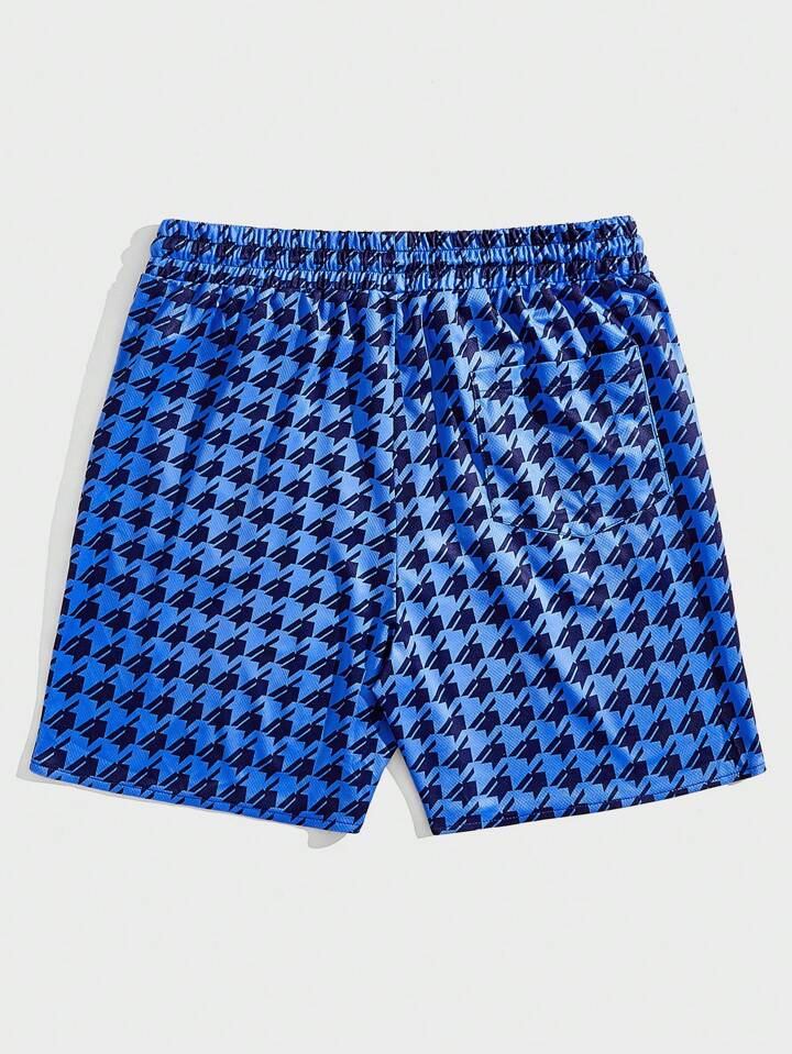 Prep Guys Houndstooth & Letter Graphic Drawstring Waist Shorts