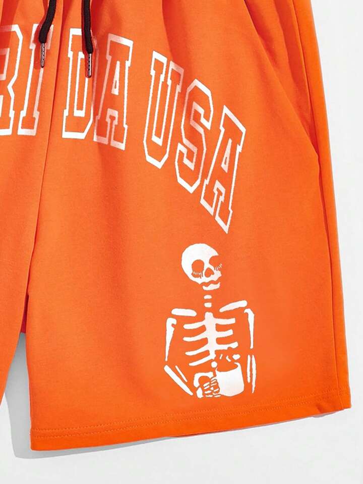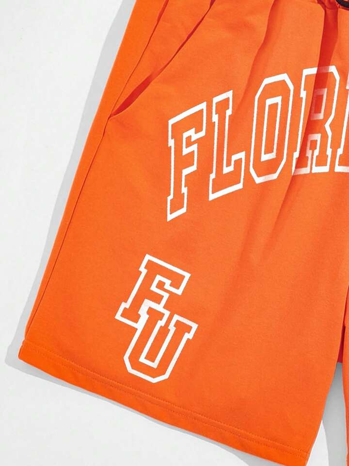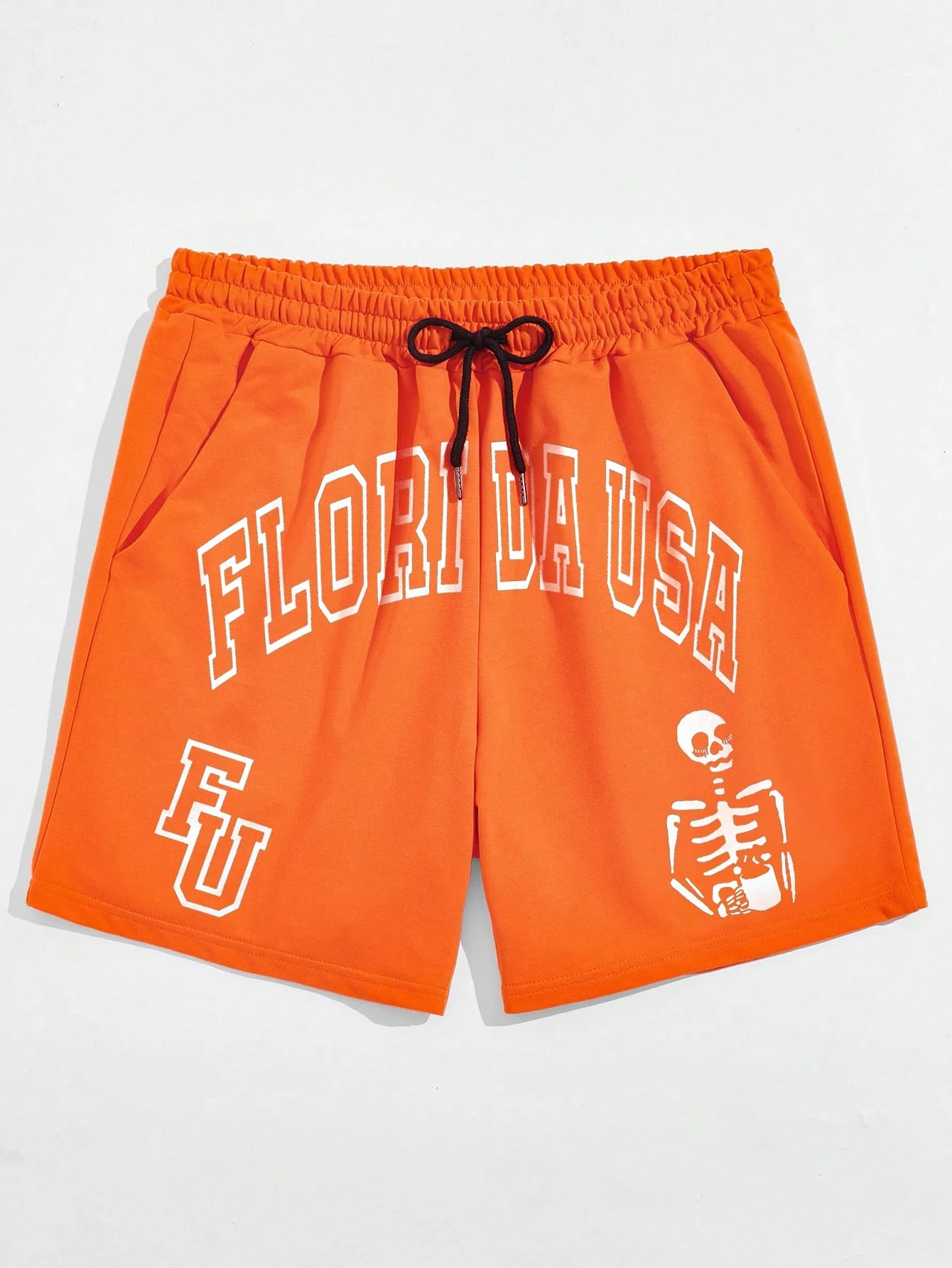 Prep Guys Letter Graphic Drawstring Waist Shorts