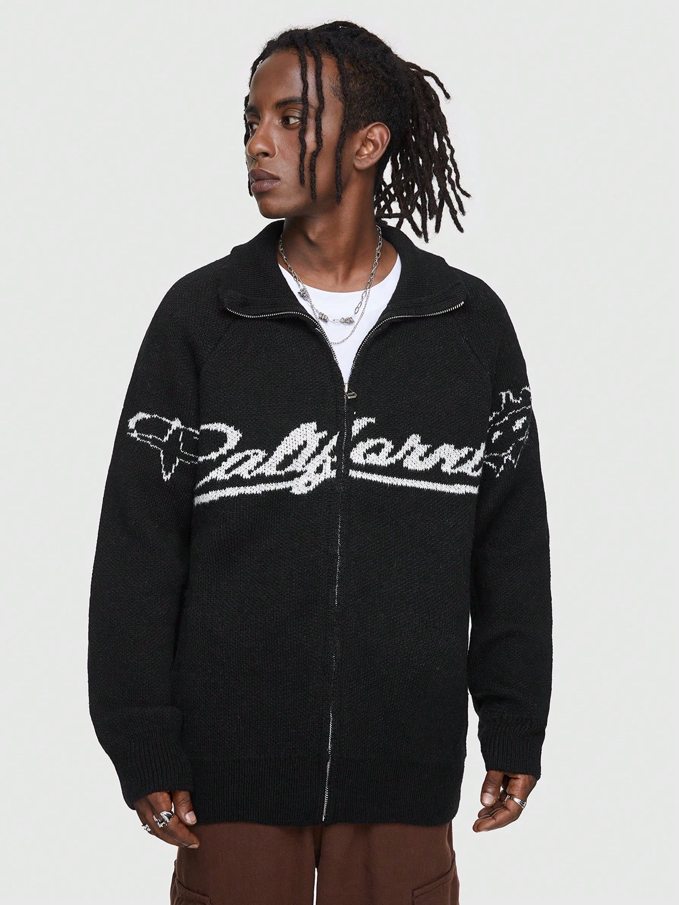 Prep Guys Letter Pattern Zip Up Raglan Sleeve Cardigan