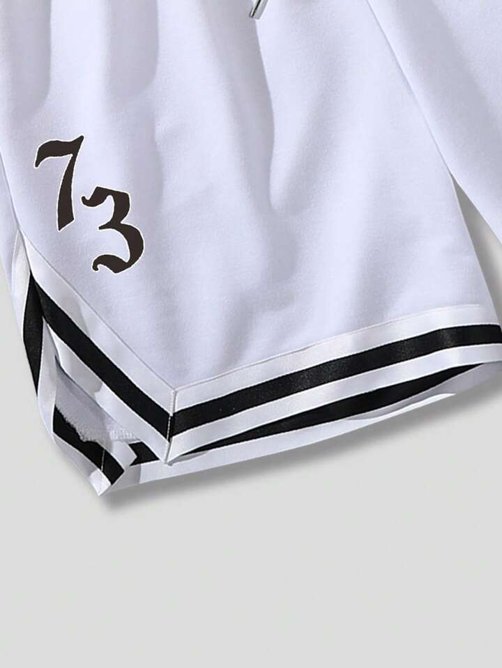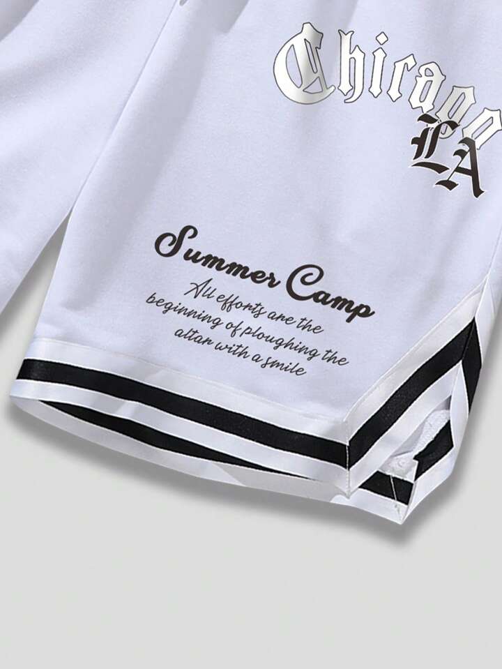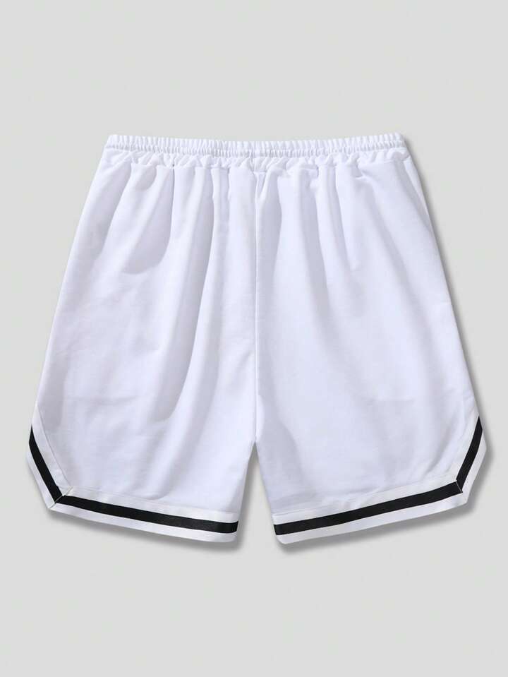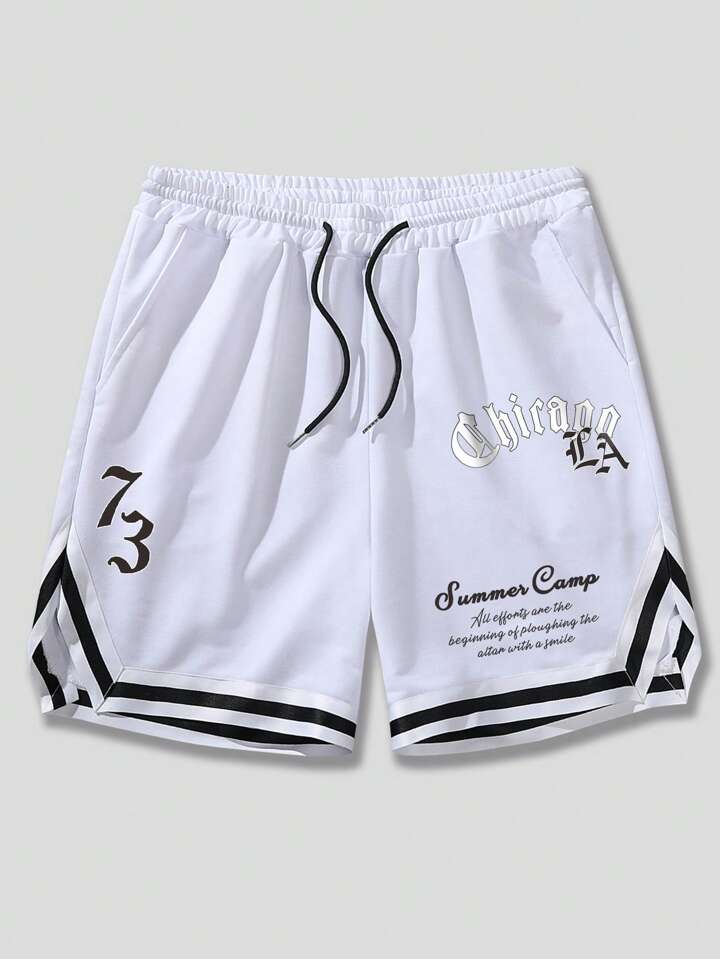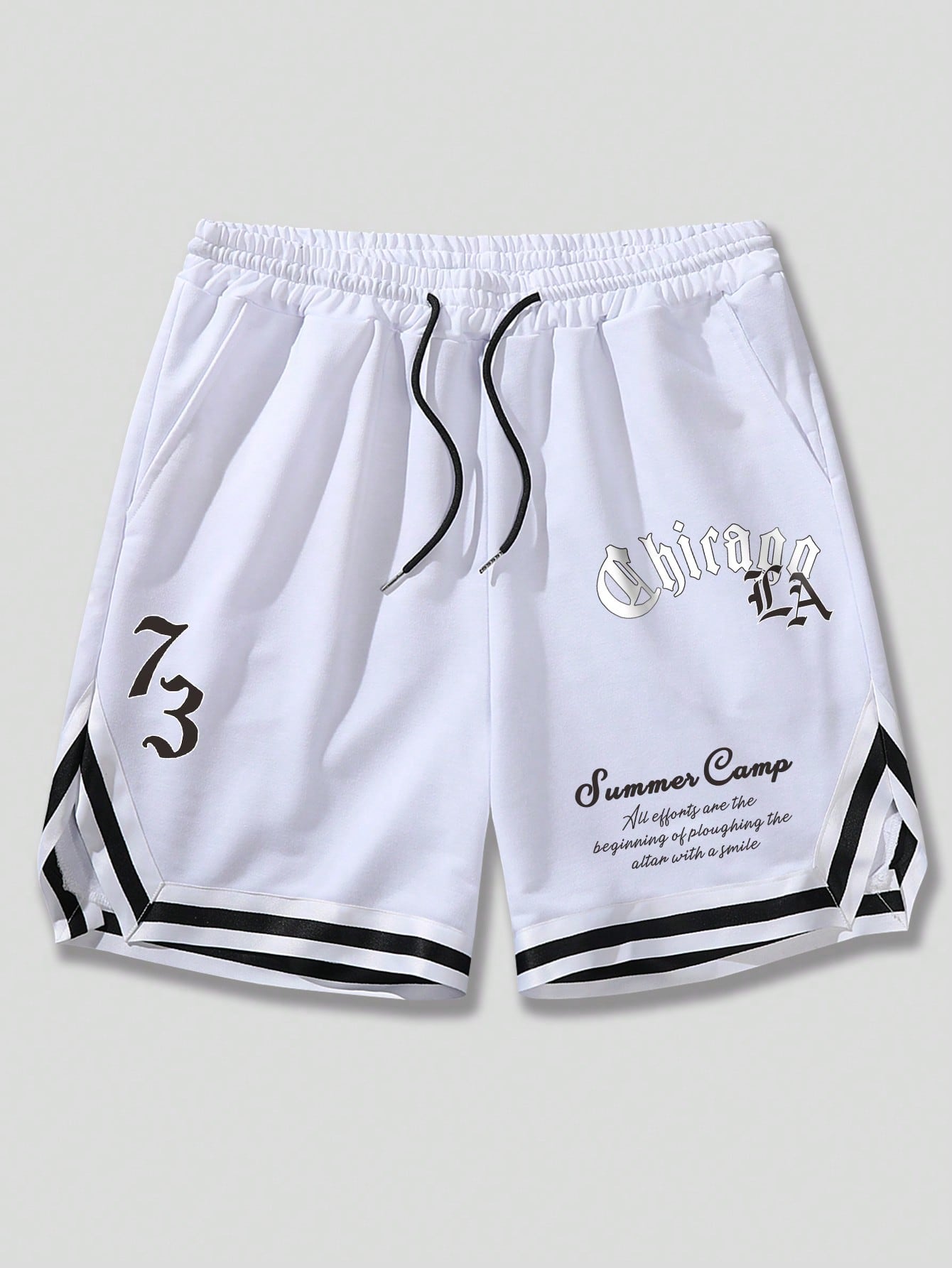 Prep Guys Slogan Graphic Stripe Trim Drawstring Waist Shorts