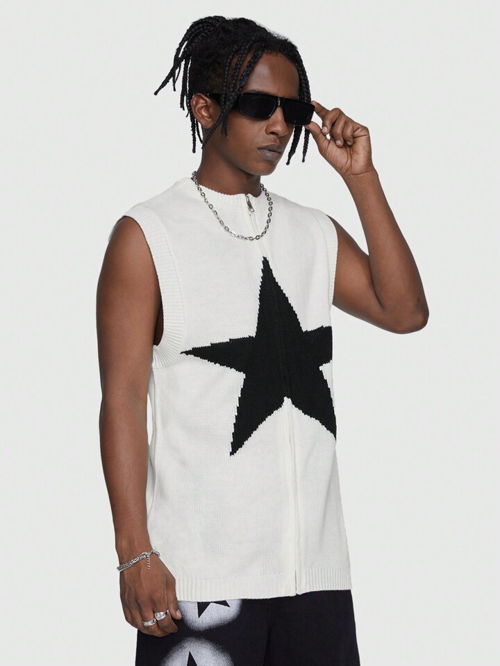 Prep Guys Star Pattern Zip Up Sweater Vest