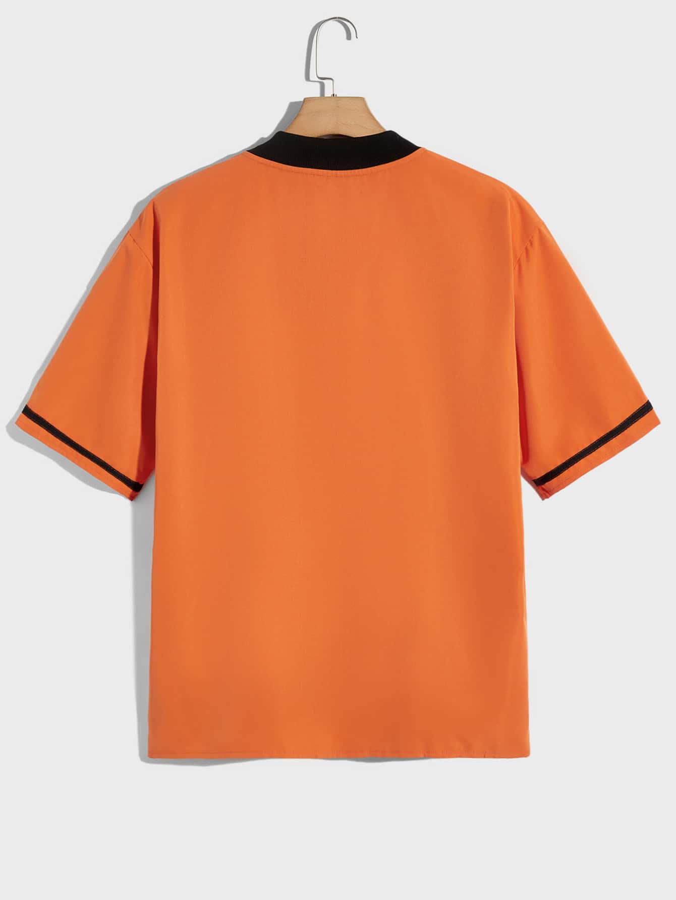 Prep Men Letter Graphic Baseball Collar Shirt Without Tee