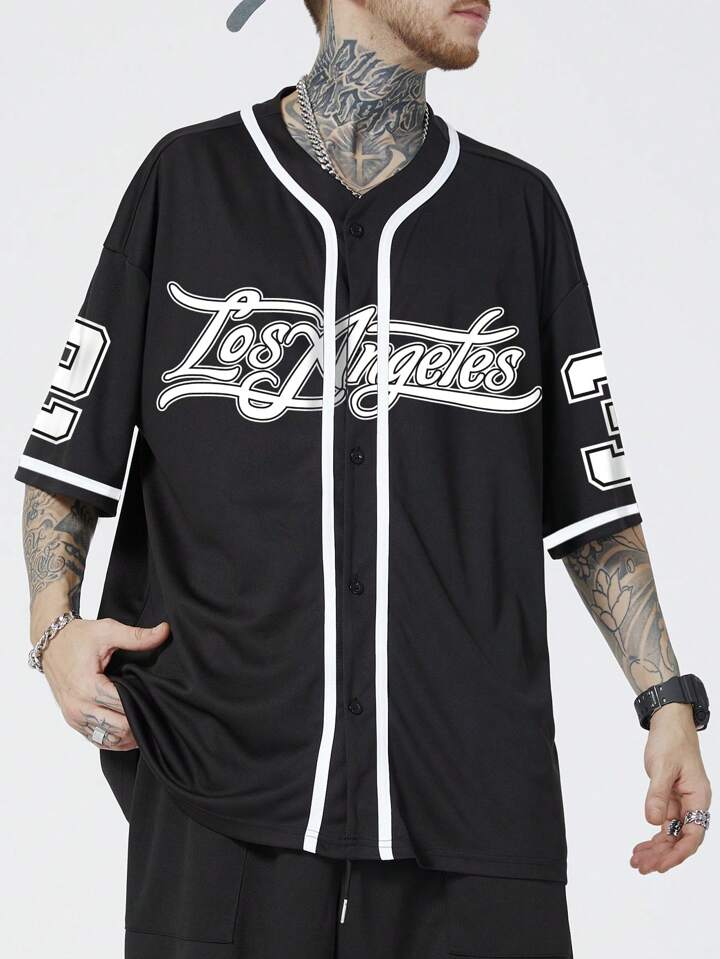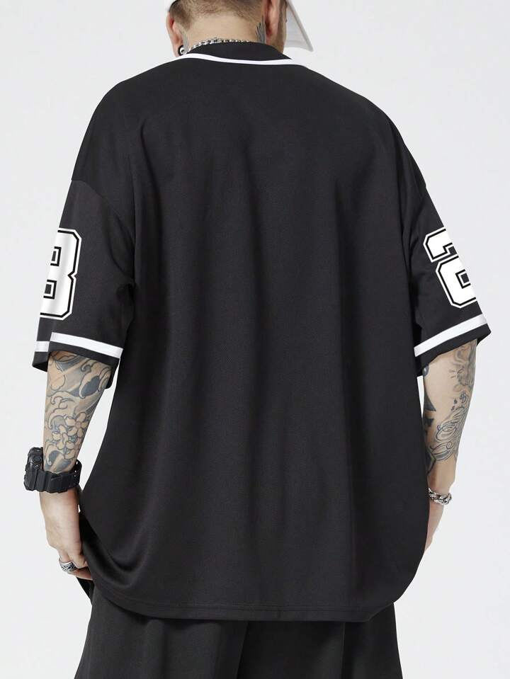 Prep Men Letter Graphic Contrast Tape Shirt Without Tee, School
