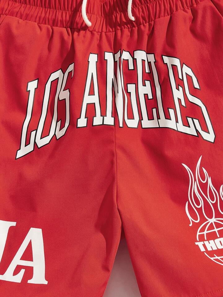Prep Men Letter Graphic Drawstring Waist Shorts, School