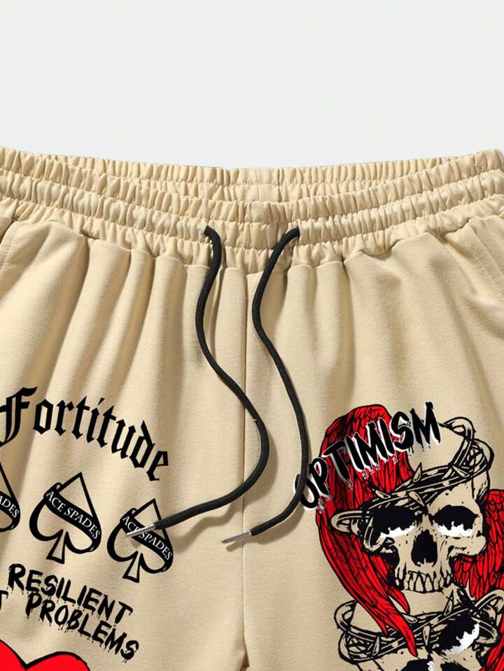 Prep Men Skull & Letter Graphic Striped Trim Drawstring Waist Shorts, School