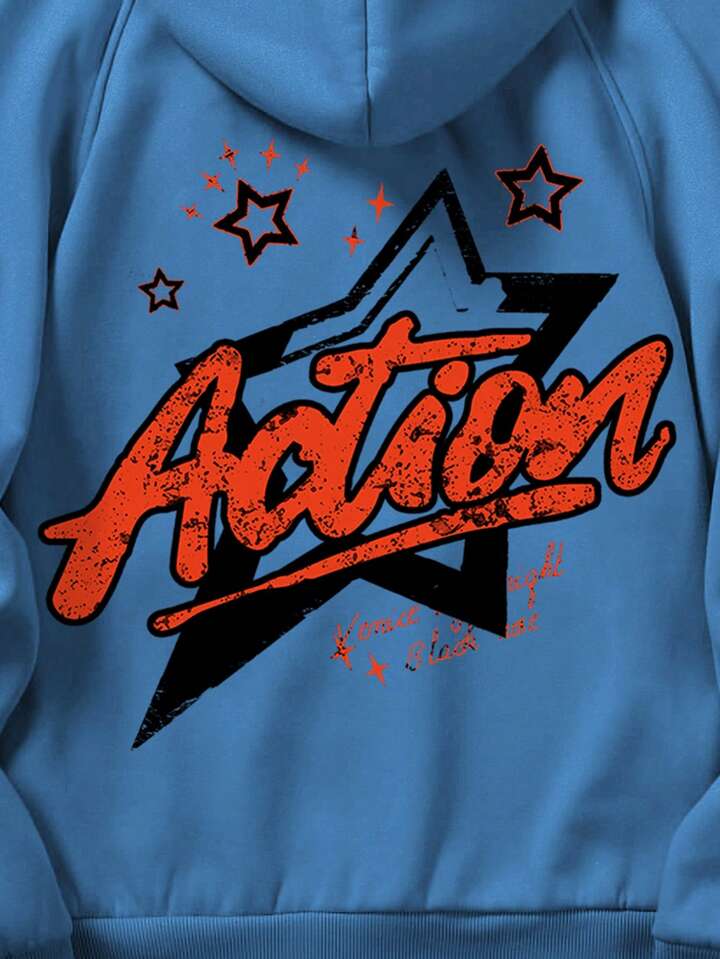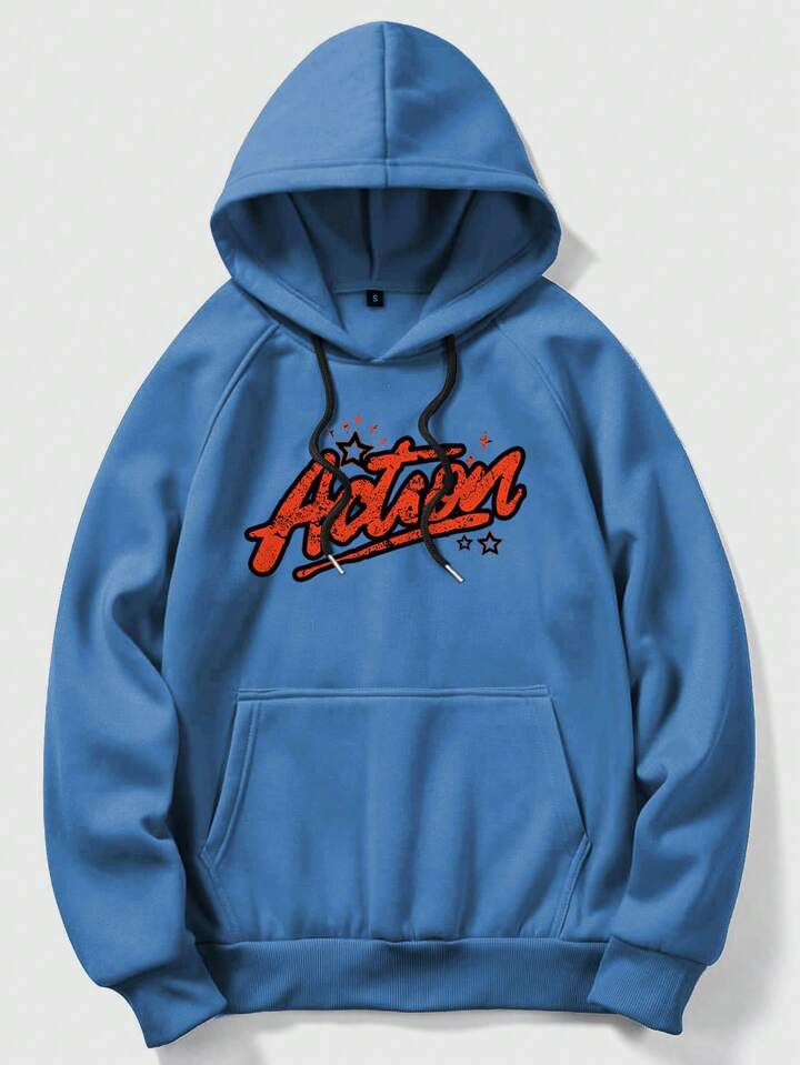Prep Men Star & Letter Graphic Raglan Sleeve Drawstring Thermal Lined Hoodie