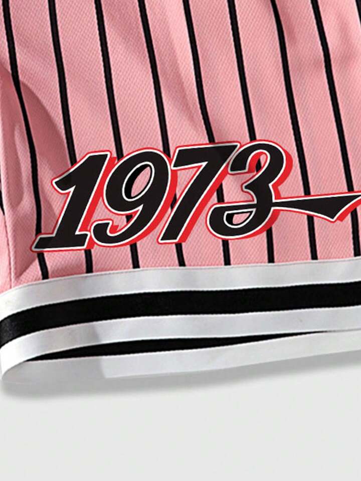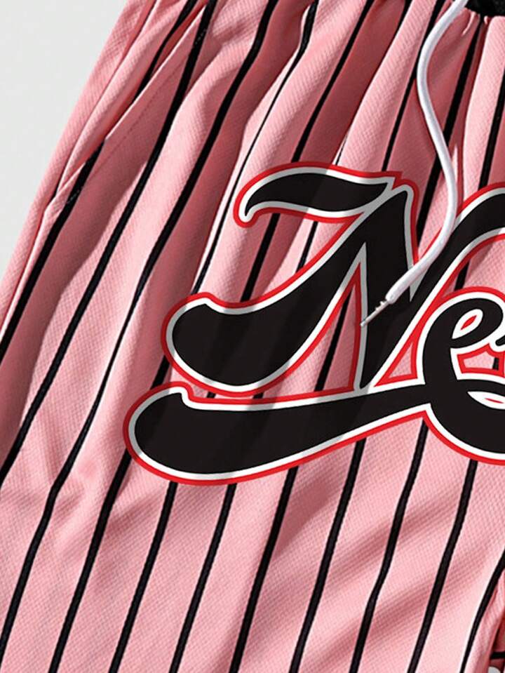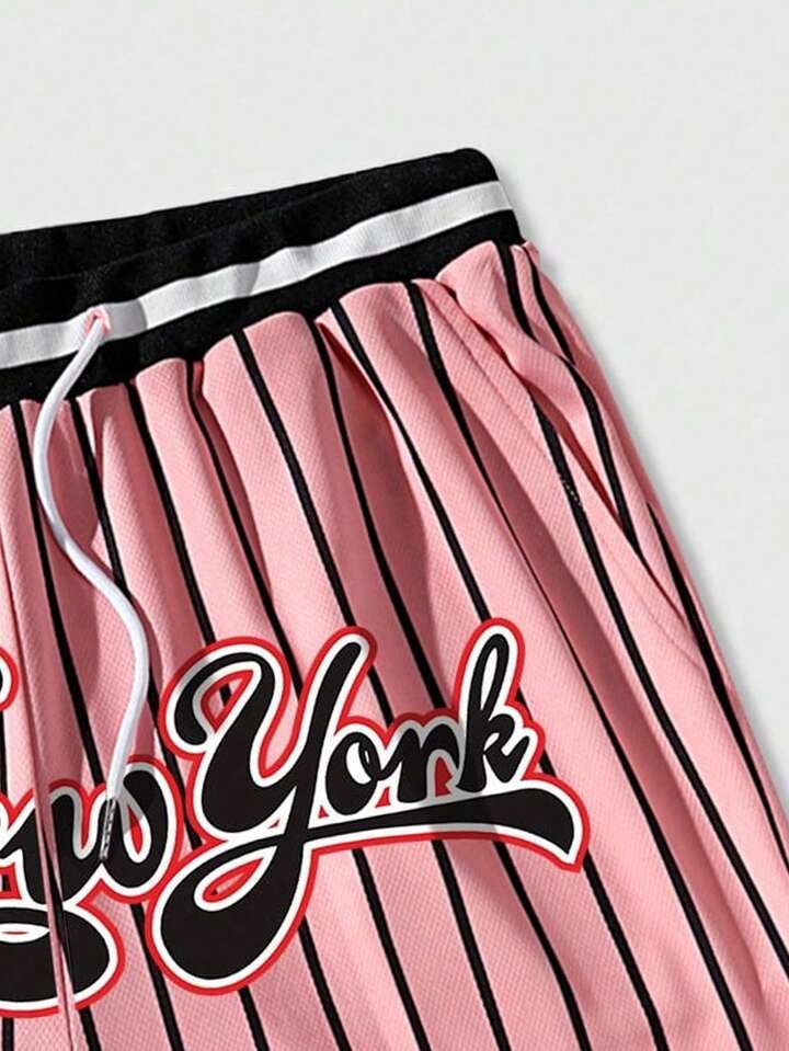 Prep Men Striped & Letter Graphic Drawstring Waist Mesh Basketball Shorts