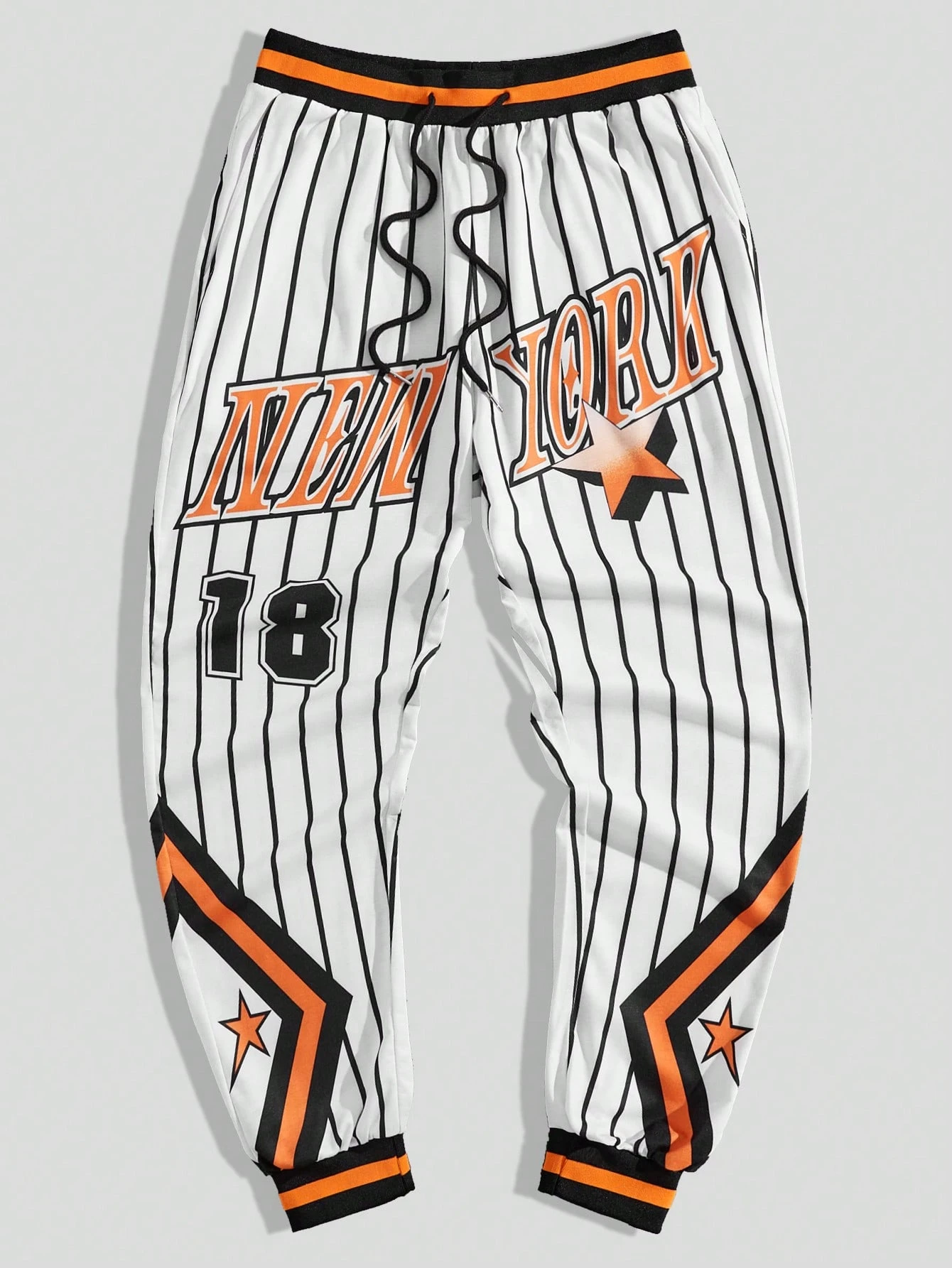 Prep Men Striped Letter Print Drawstring Waist Sweatpants