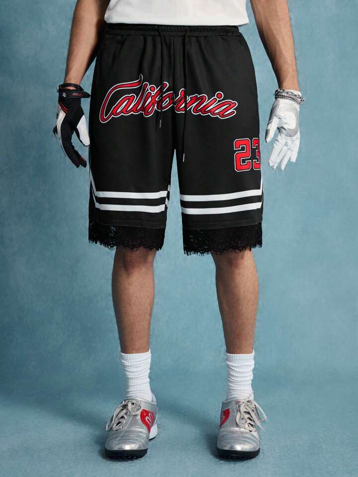 Prep Men's Basketball New Street-Style American Design Patchwork Lace Trim Sports Shorts