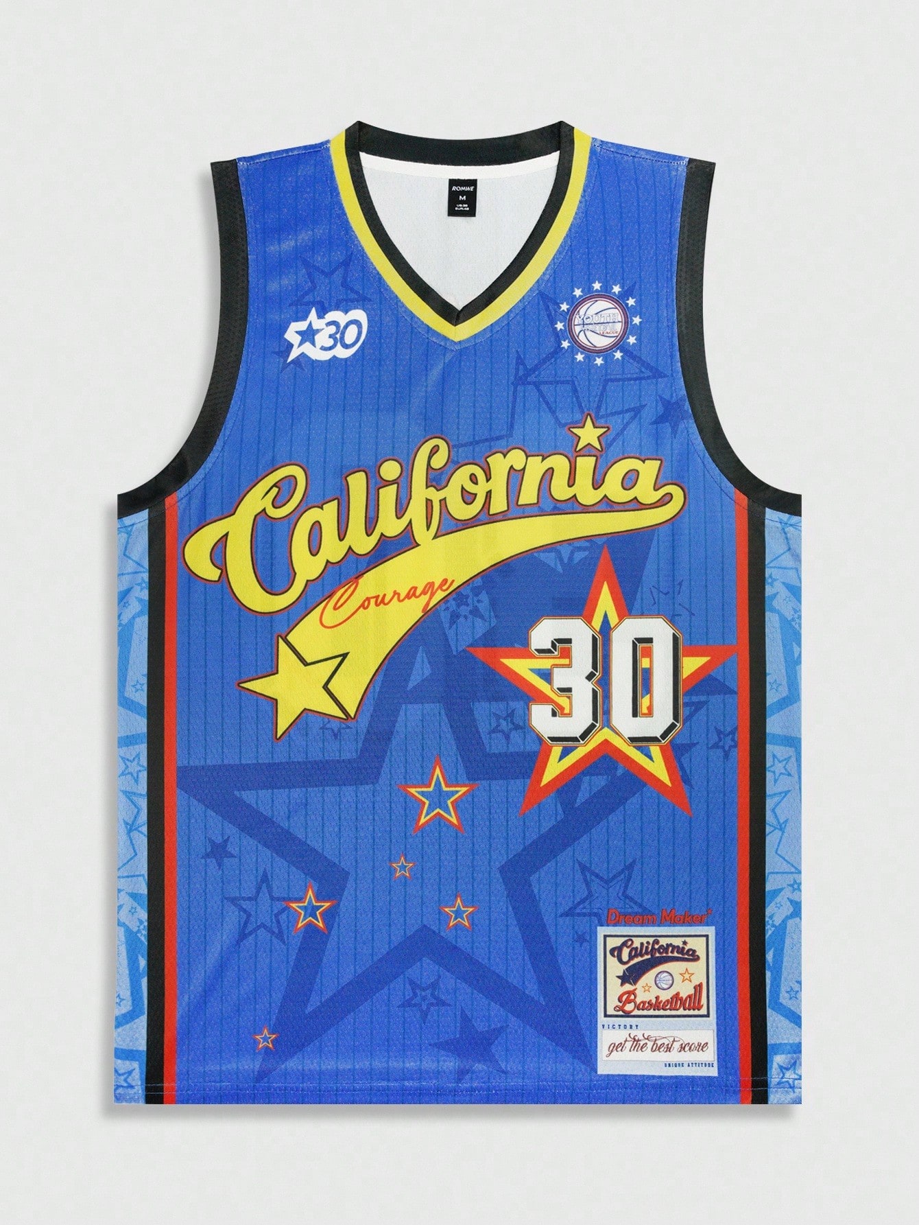 Prep Men's Basketball Street Print Sleeveless Tank Top, Suitable For Spring/Summer Everyday Wear