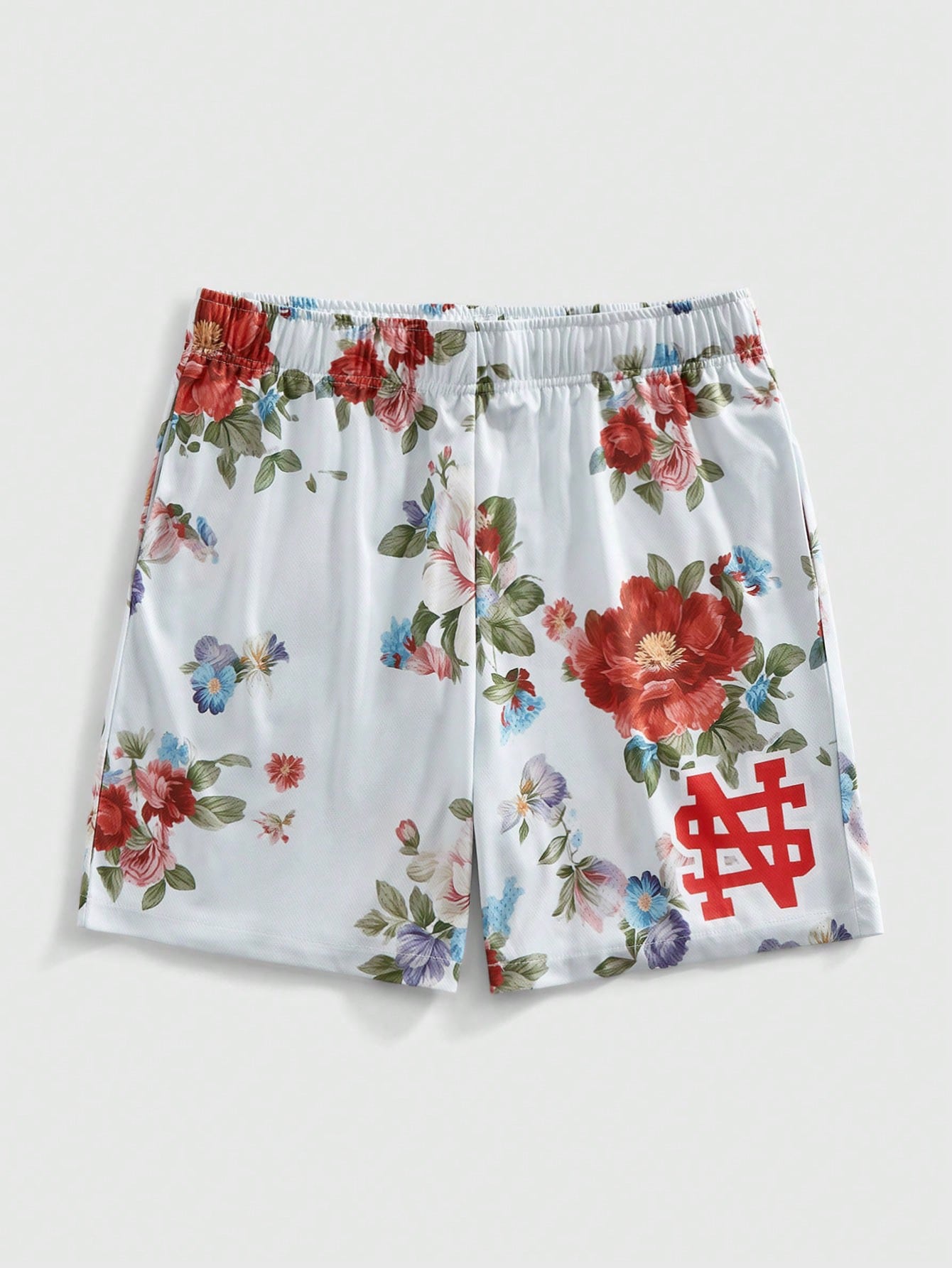 Prep Men's Casual Vacation & Commute Floral & Letter Print Loose Cargo Shorts With Side Pockets, Suitable For Summer