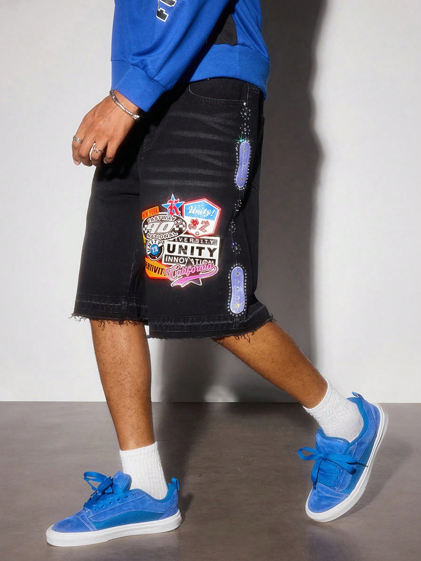 Prep Men's Colorful Diamond College Loose Denim Shorts